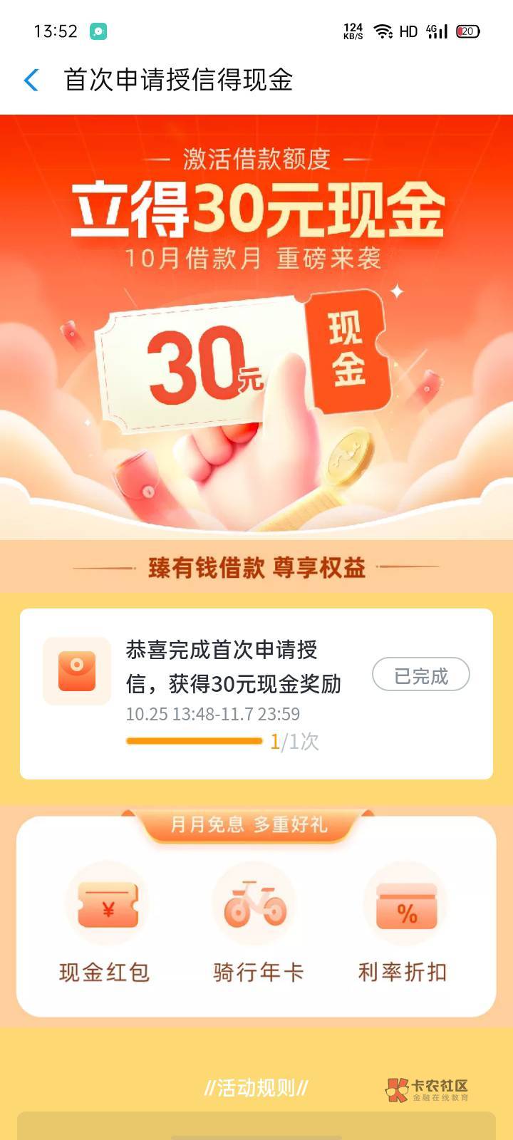 钱包,点借钱,进去右下角有个弹窗30活动