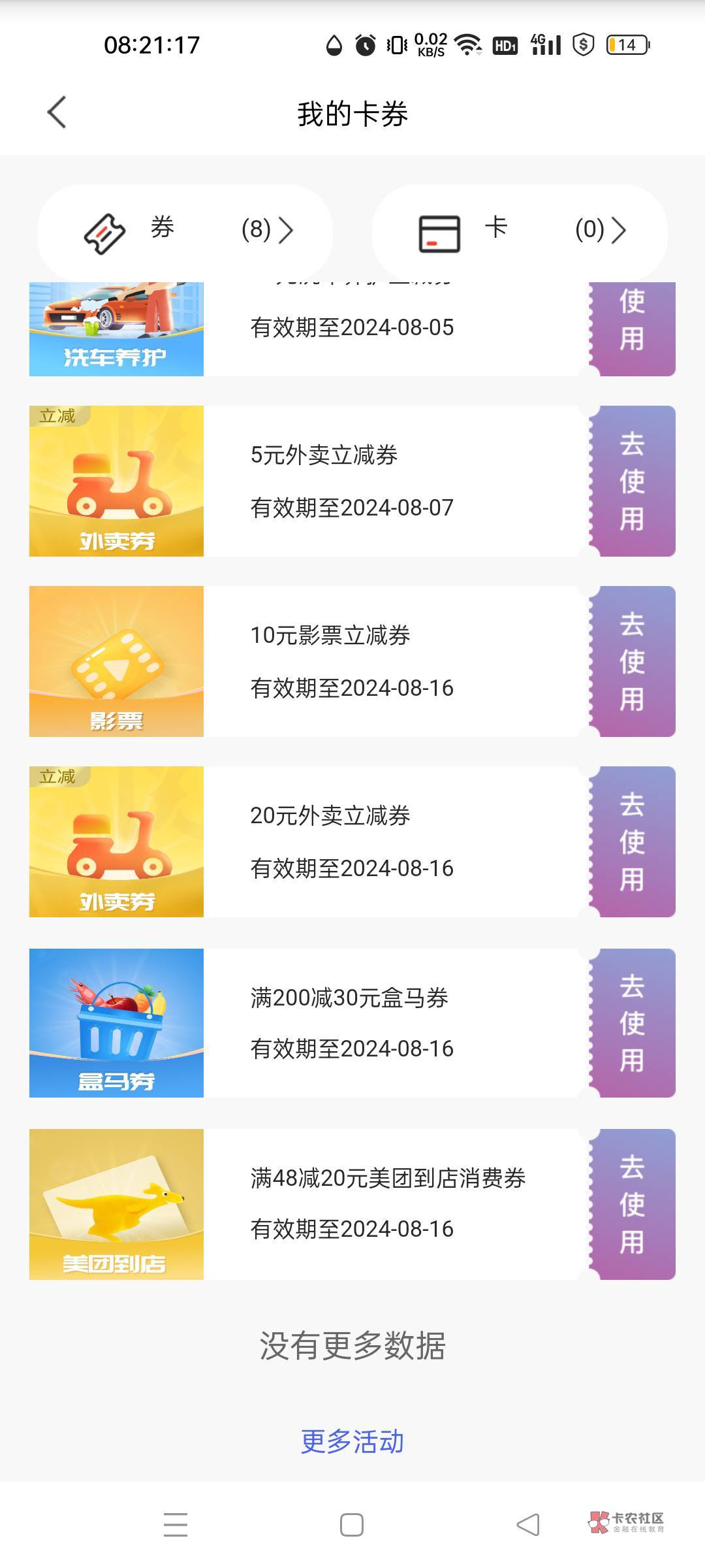 外面美团团购20的无门槛劵最低15