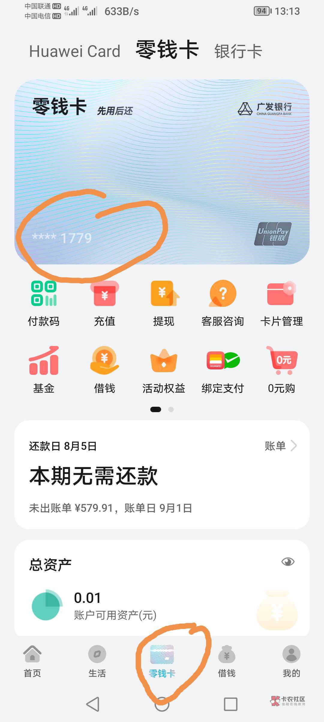 没看到零钱卡