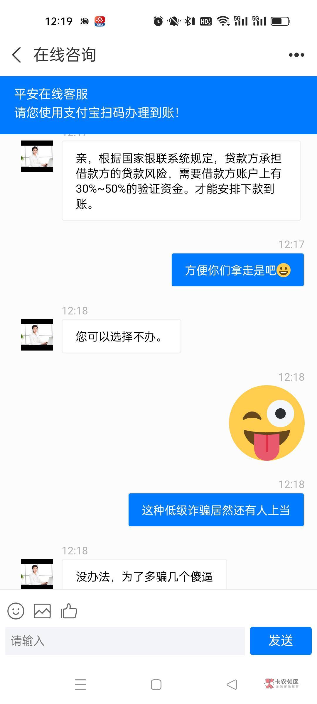 骗人钱还这么嚣张,一定得骂,我碰到过好几次了,每次我都特别兴奋,先装作上当了,然后冷不丁一连串输出,骂完删除,哈哈
