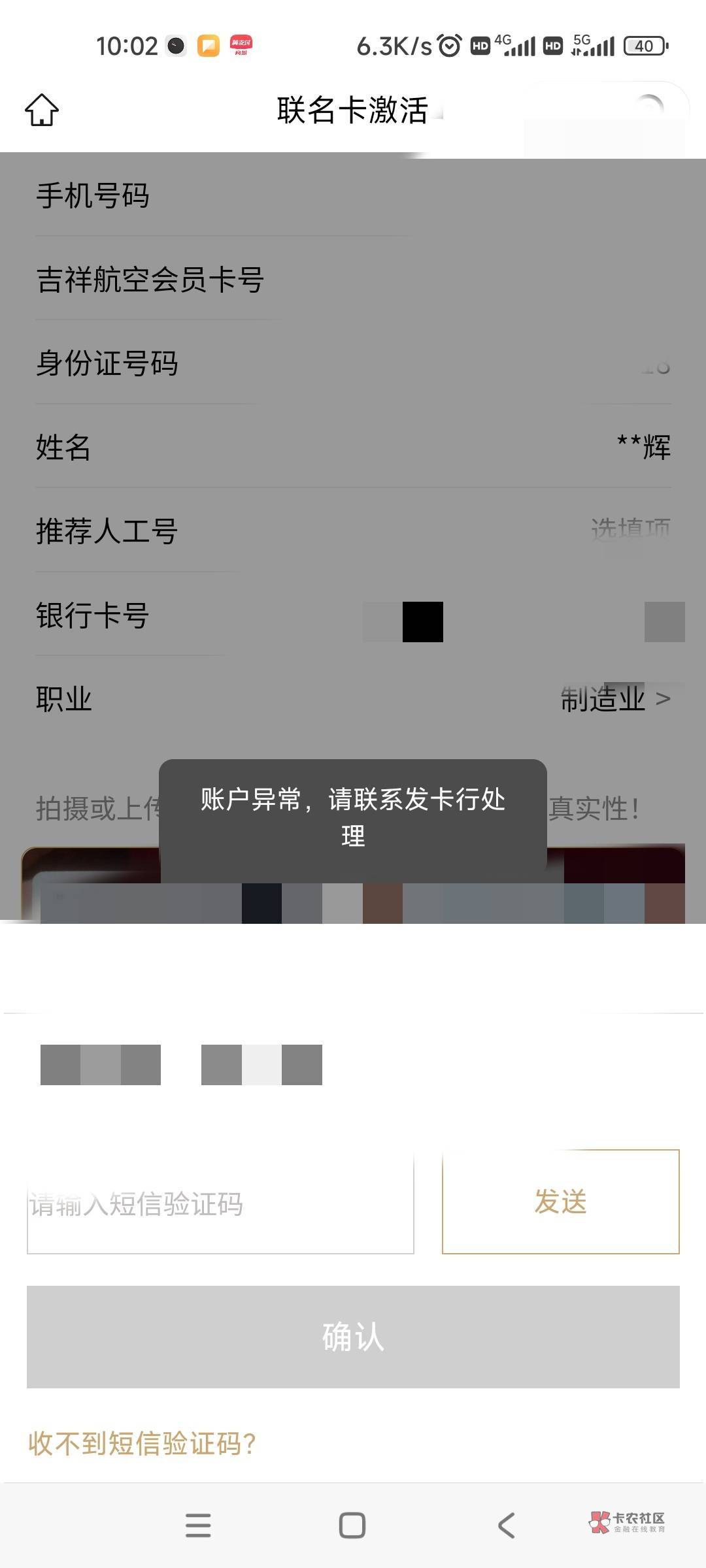 你绑定卡出事了 要么非柜要么出现什么问题了