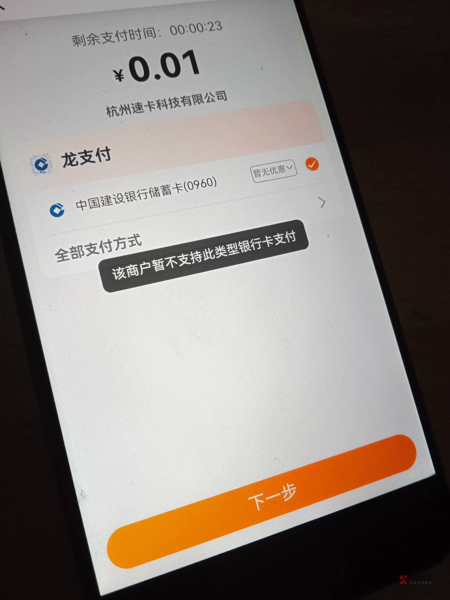 一类卡也付不了,必须龙支付钱包