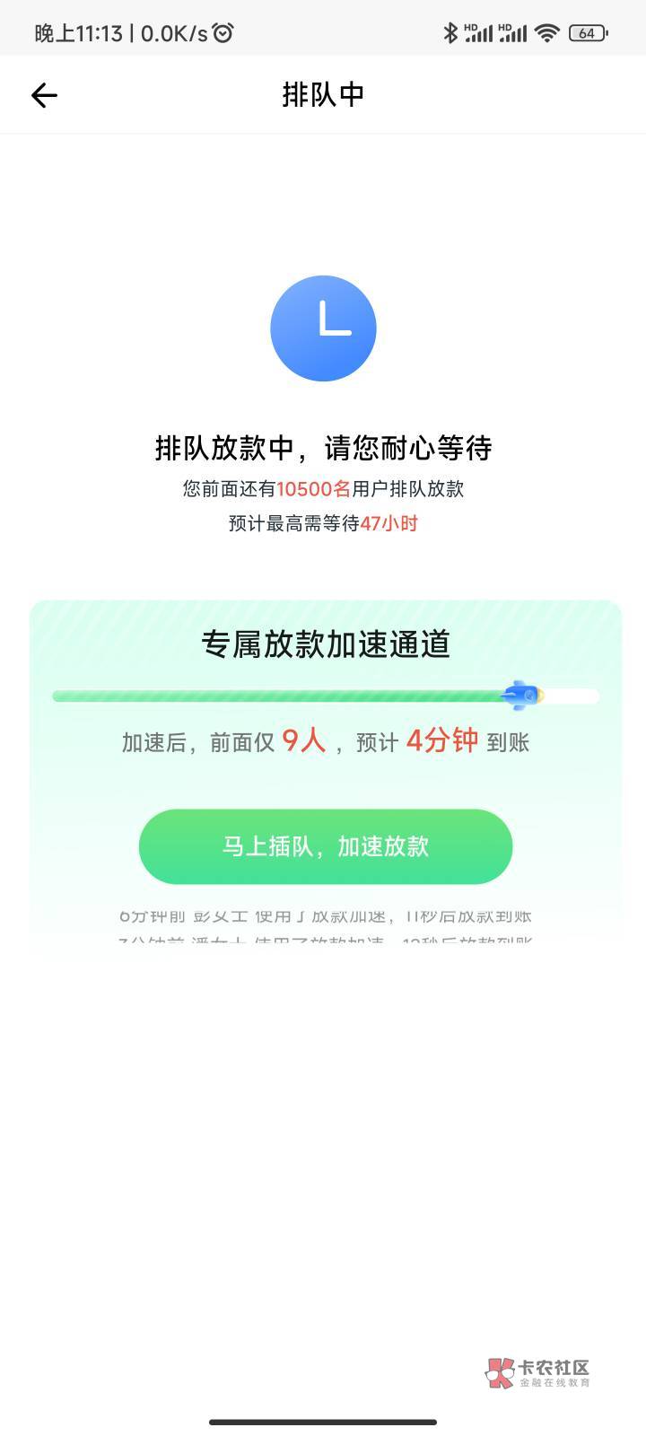 今天上午就打了,说会员加速失败,给我退了,现在一直放款中,昨天晚上10点到现在