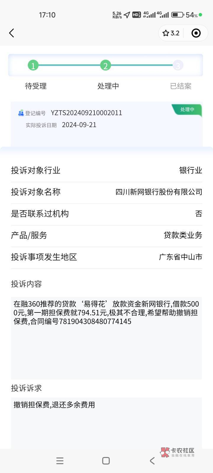 我的担保费全退了,投诉资方,易得花,耗时一个星期、不过退了以后再也用不了易得花了