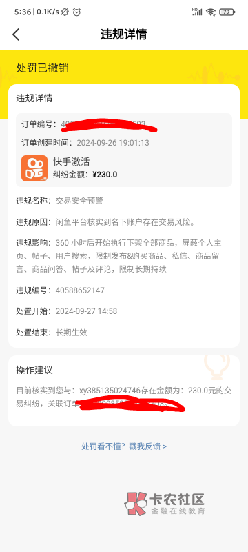 我说他拿我sm去号违法的事,闲鱼几分钟就给我撤销了