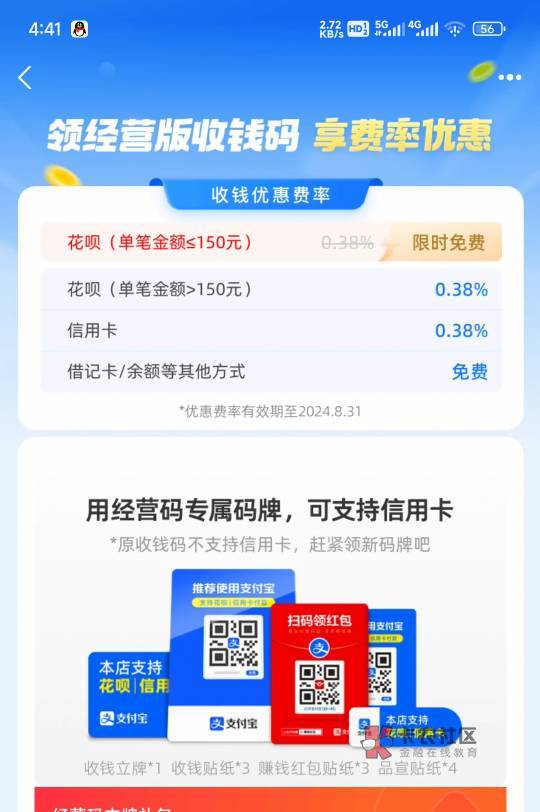 我普通经营码,花呗收款0.6%手续费,实体码是0.38%,他就收你1个点,做慈善啊