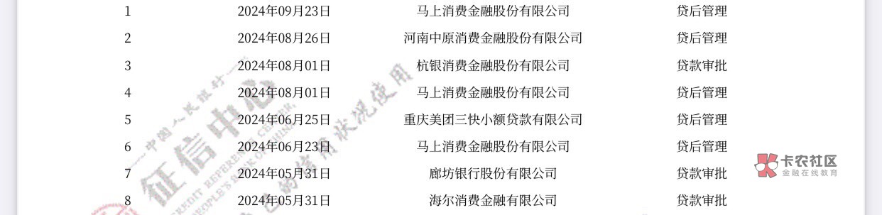 我的意思是你在马上消费借款之后征信没有贷款审批只有贷后管理,是因为放款的资方是马上消费那边的,不是其他机构或者银行的