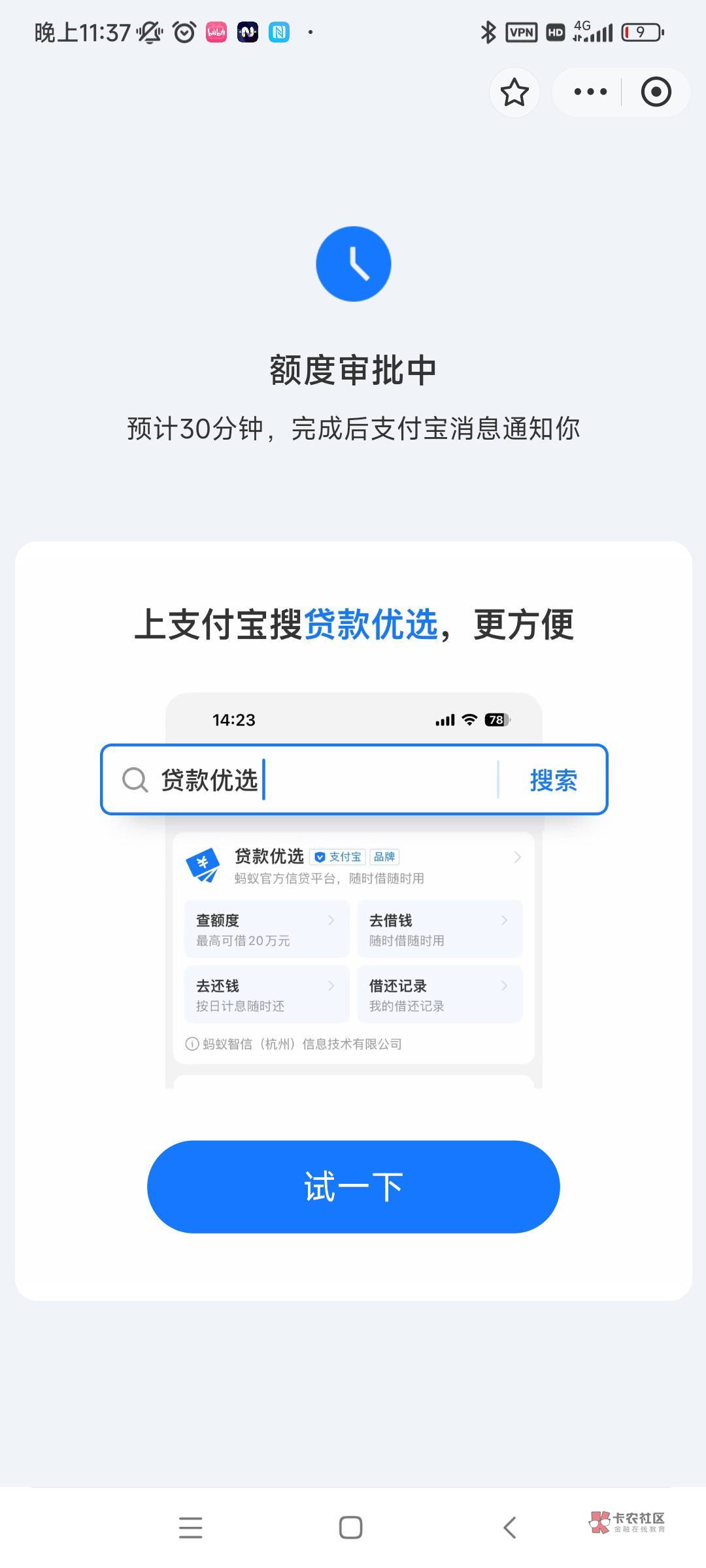 一样的页面,主要这个也查征信,我有呆账,没有呆账的可能有戏,我也是今天才出这个贷款优选的页面酒干倘卖无1 发表于 2024-10-07 23:51
