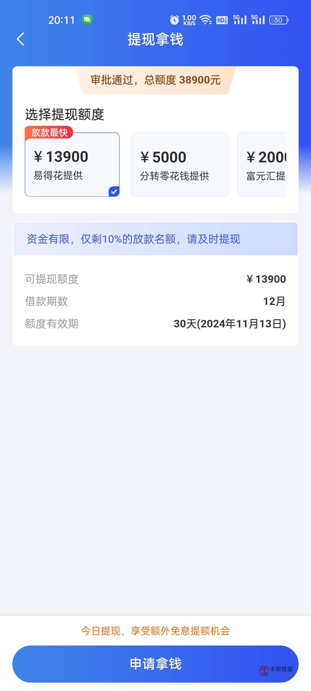 为什么不去易得花app提现,我之前融360出额度13000,绑定二类卡放款失败,去易得花看,结果之前的号码还注销了,拿小号登录实名,额度还是13000,担保费好像是总共792