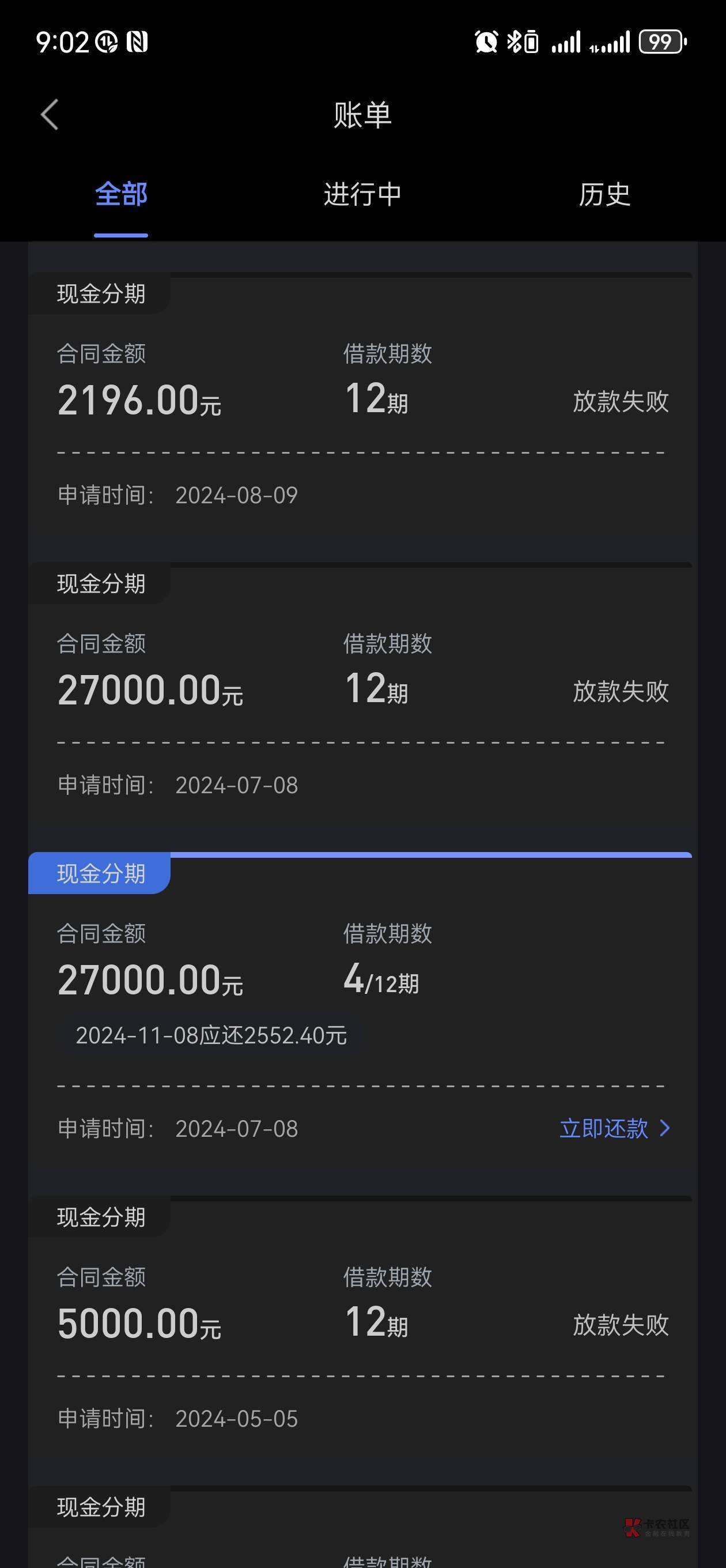 运气好会卡bug,消息界面提示放款失败,但是来短信放款成功,重新登陆就出账单了
