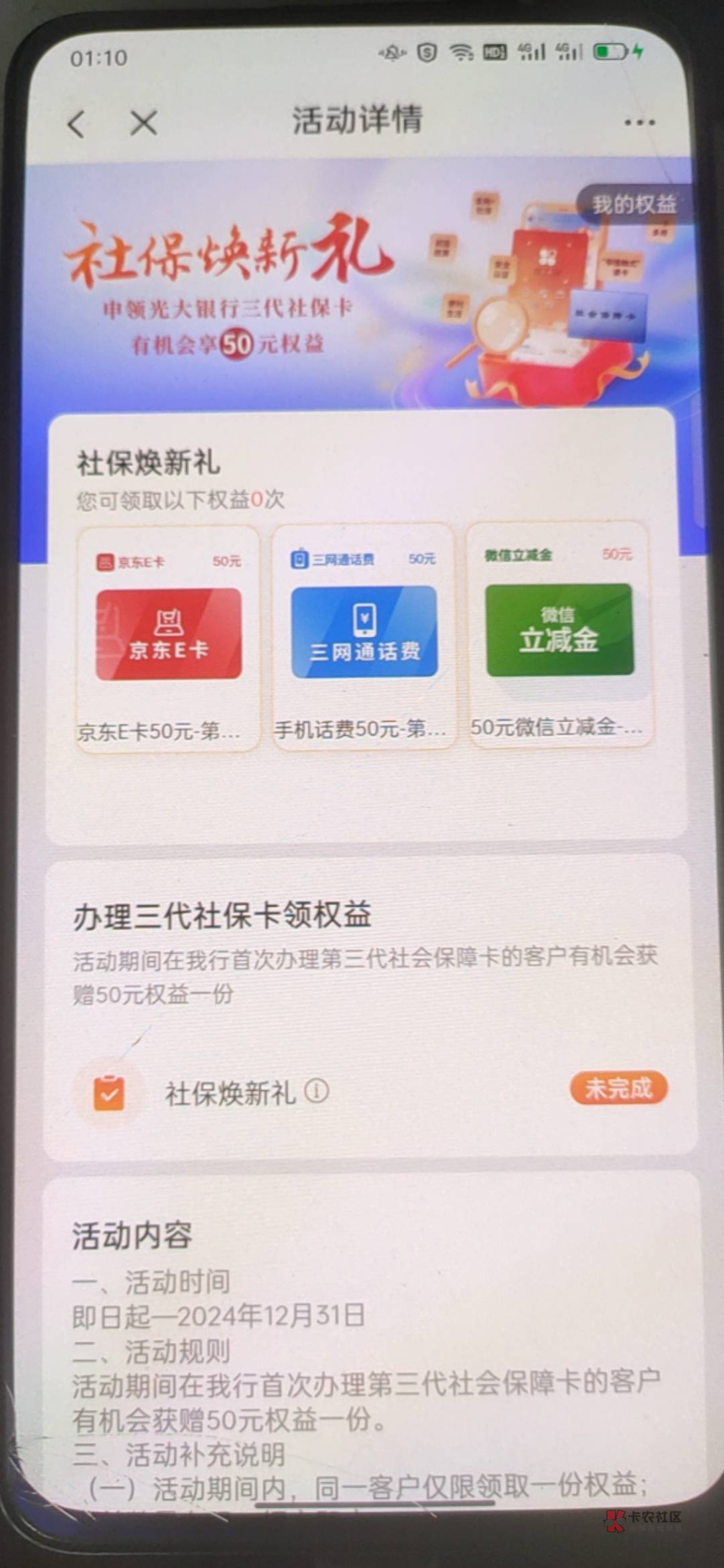 搜光大广东社保 左上角定位湛江 两天任务完成 社保卡也不用激活