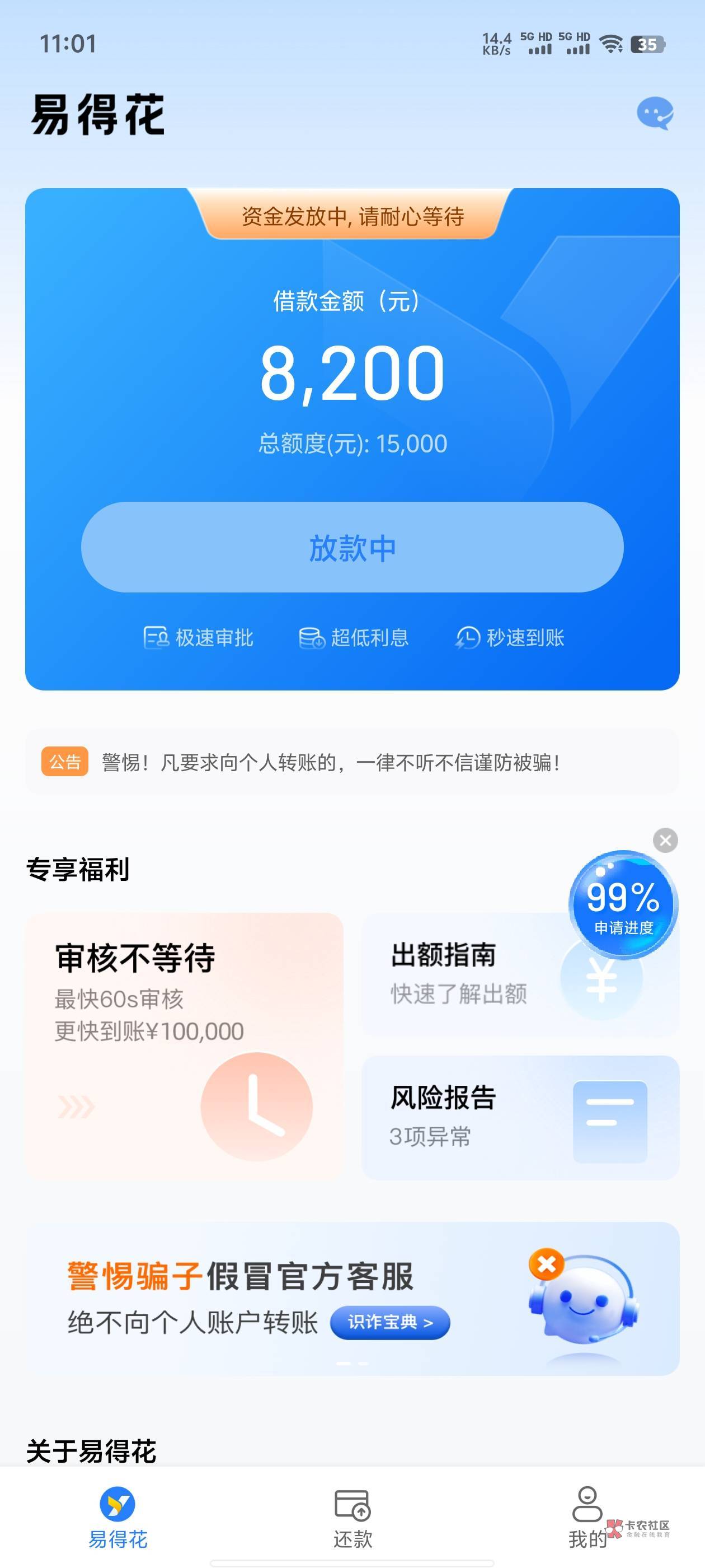 我的额度跟你一样…会有第三笔吗,前两天刚还,第二笔第一期,第一期的费用太高…