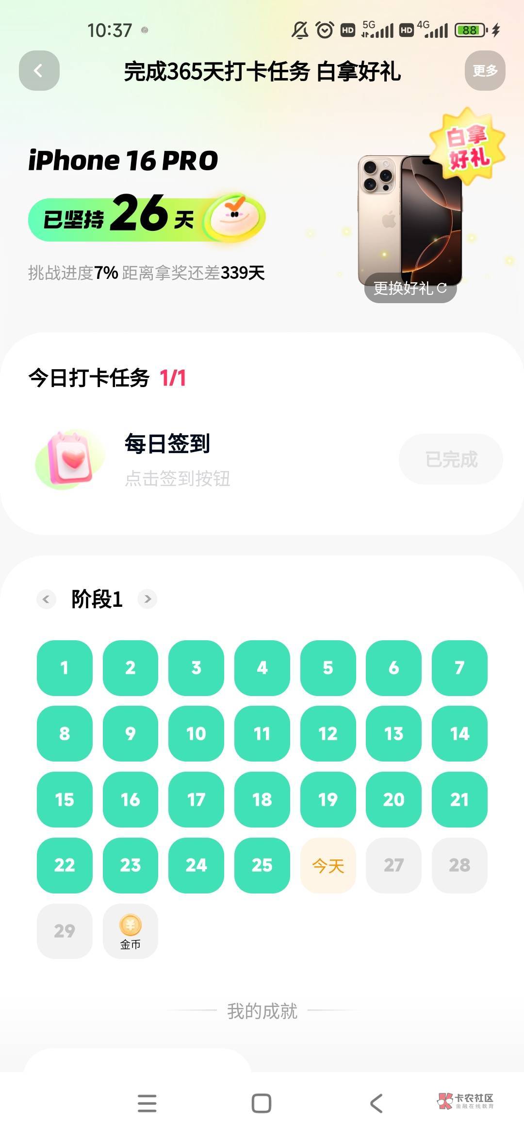 卡农领过一次365天,天天签到