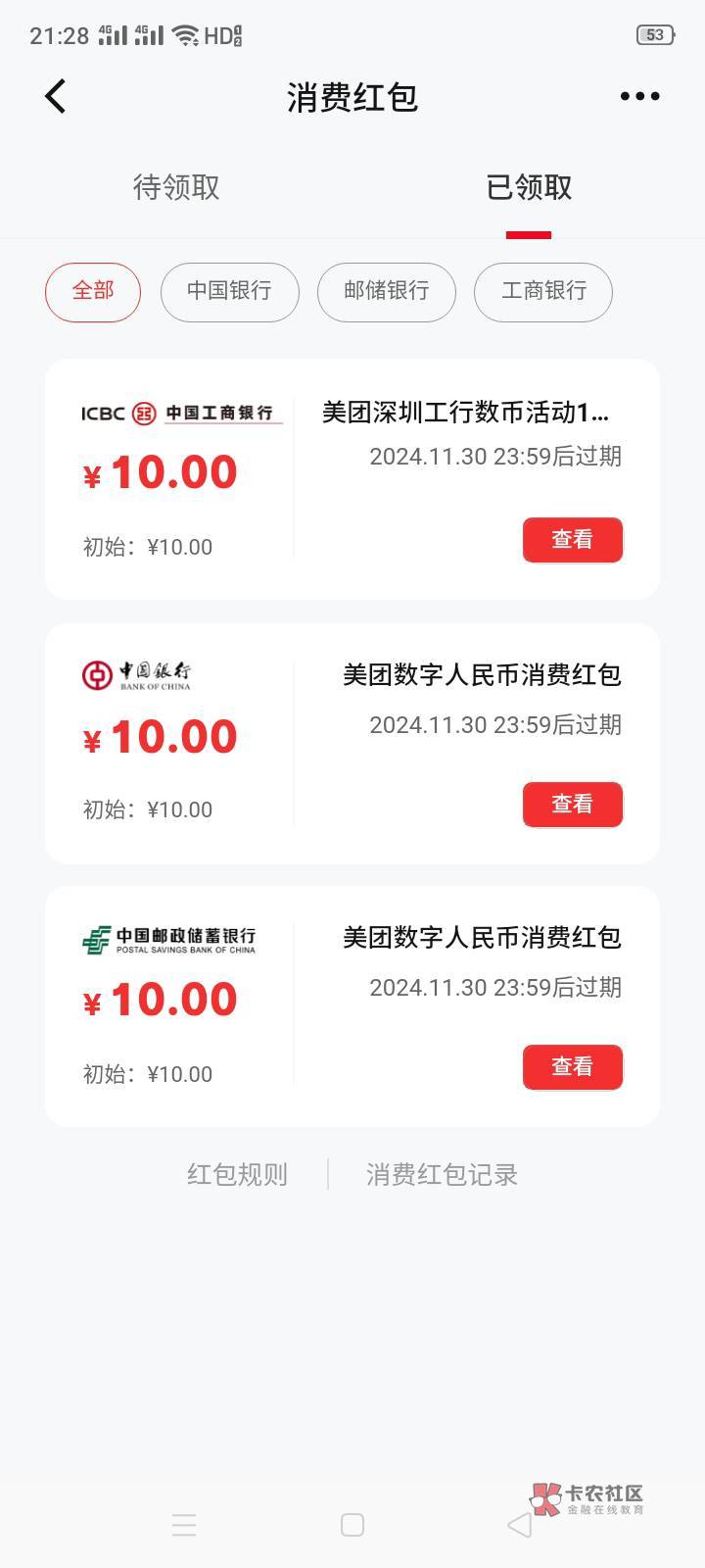 为啥你能领三个,领了邮储其他二个就没入口了