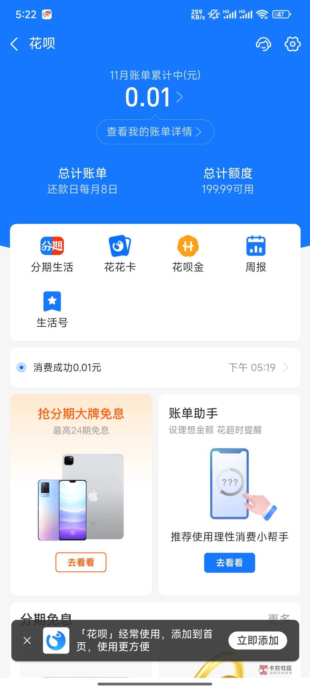 没有显示花呗分期