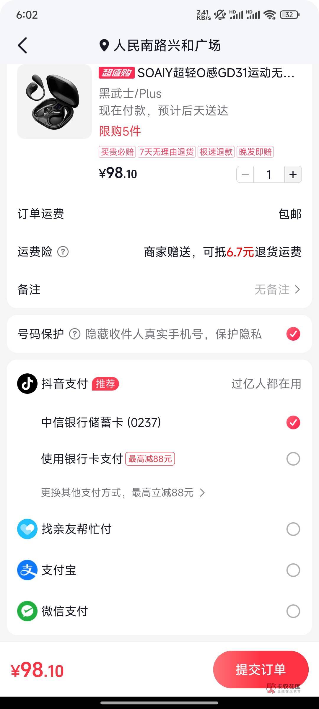 把那个抖音支付下箭头往下看就能看到