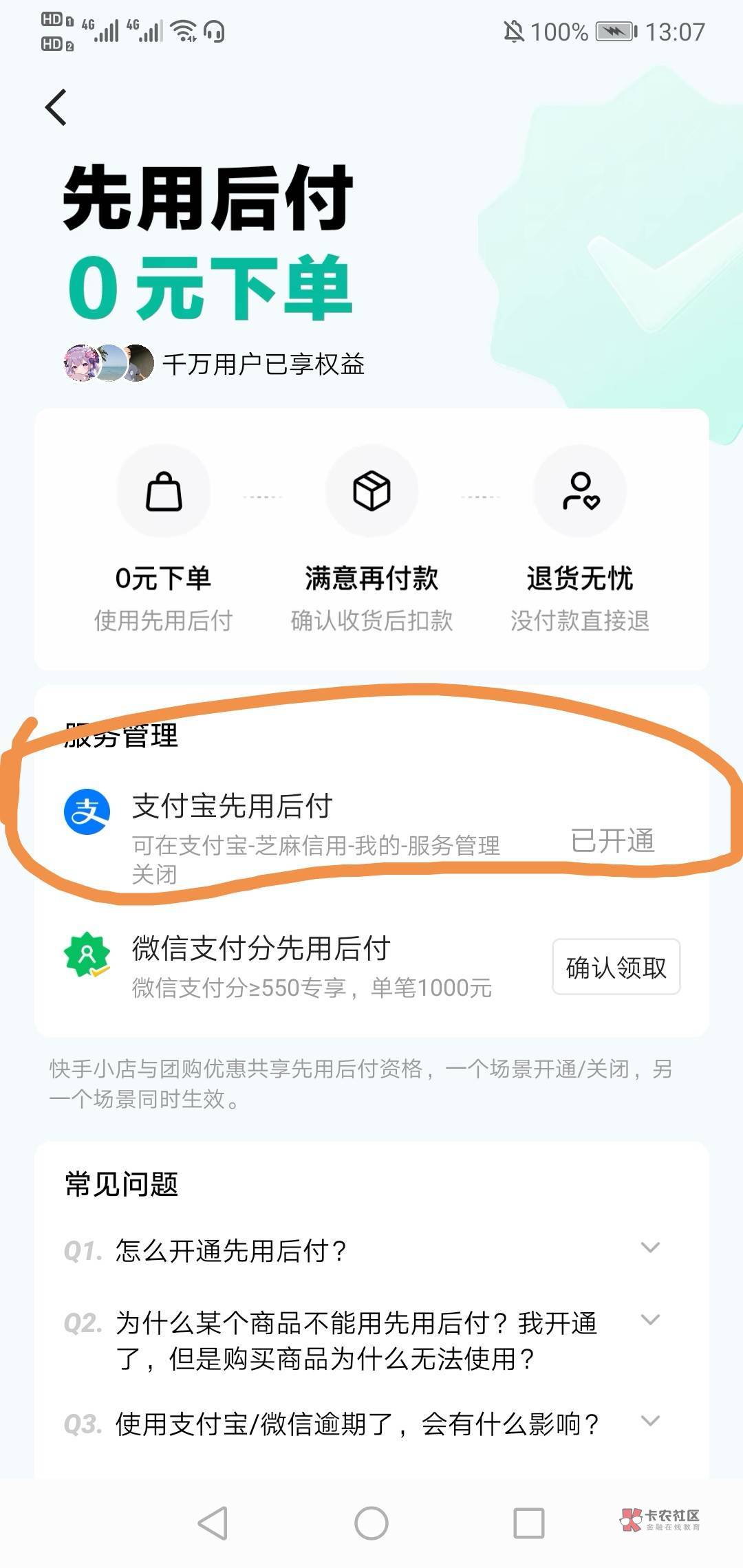 不显示先用后付咋回事,是不是快手小店里面下单,
