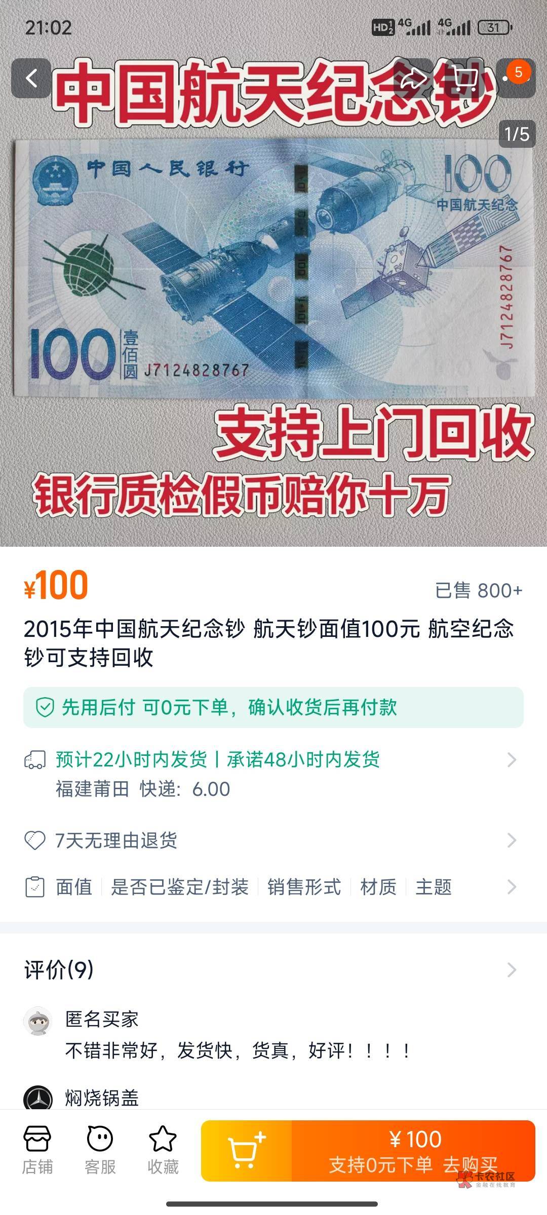 淘宝买航天钞变现就好