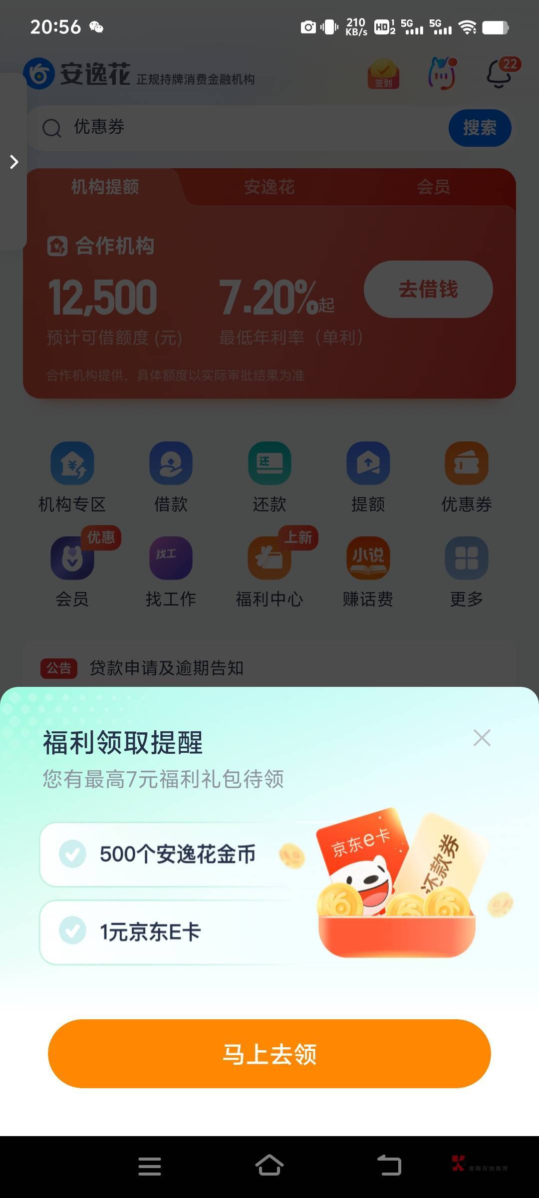 这个没用,要你安逸花借款的时候弹出来的才有用