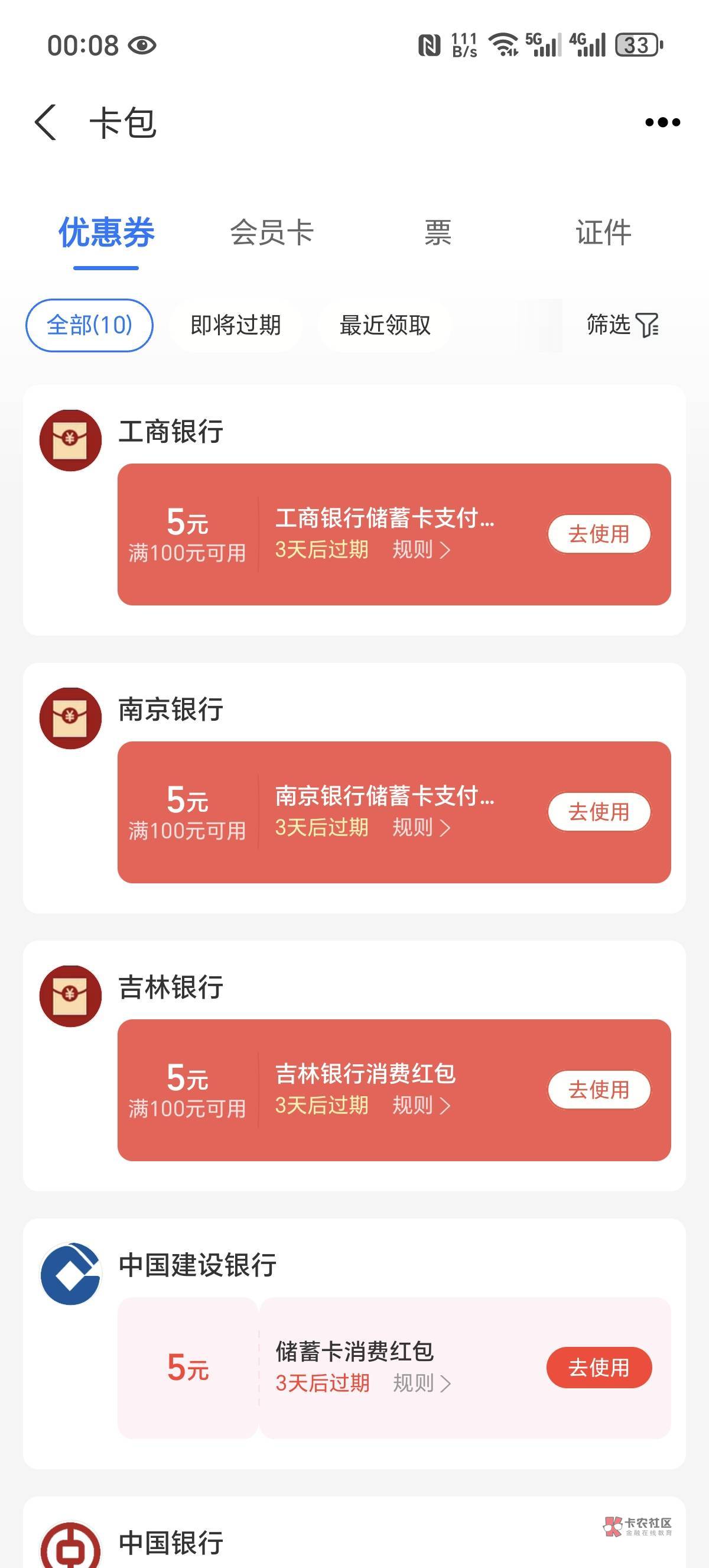 支付宝搜索YHK有优惠报名 然后每天转账支付一笔 刷四天就行