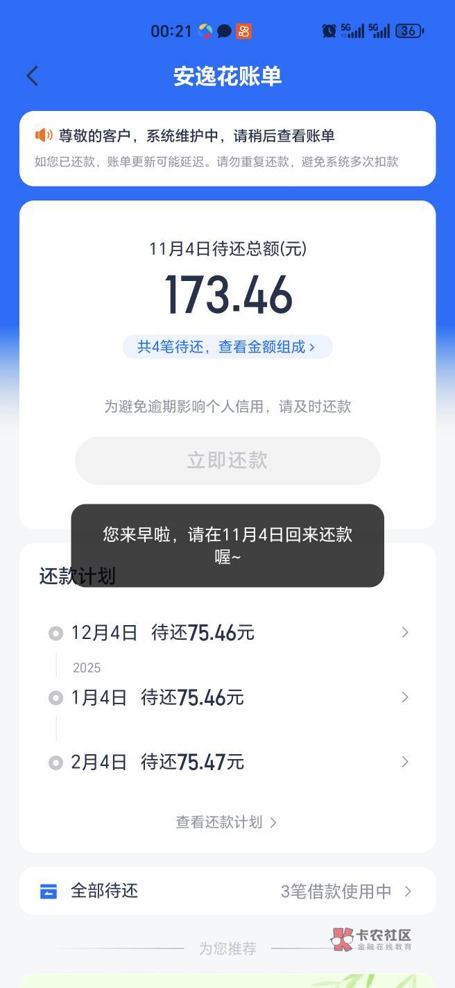 还完就T路 我昨天3号还的