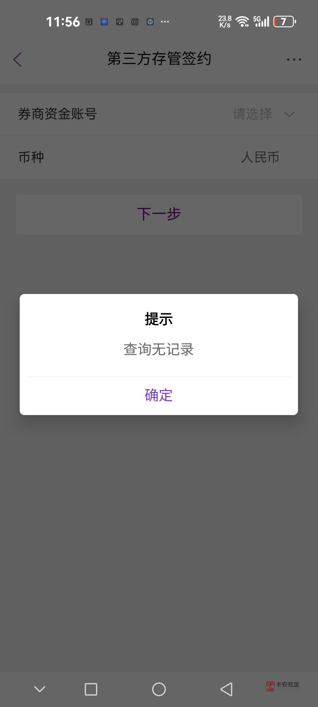我点了一下这个证券的第三方管存它页面上显示这一个,这是什么意思啊?我该怎么做