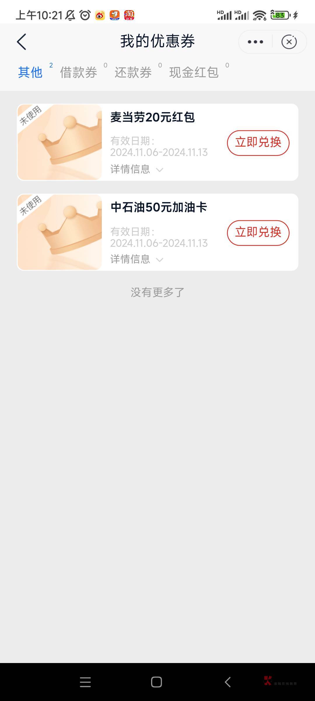 20麦当劳加50油卡。大毛