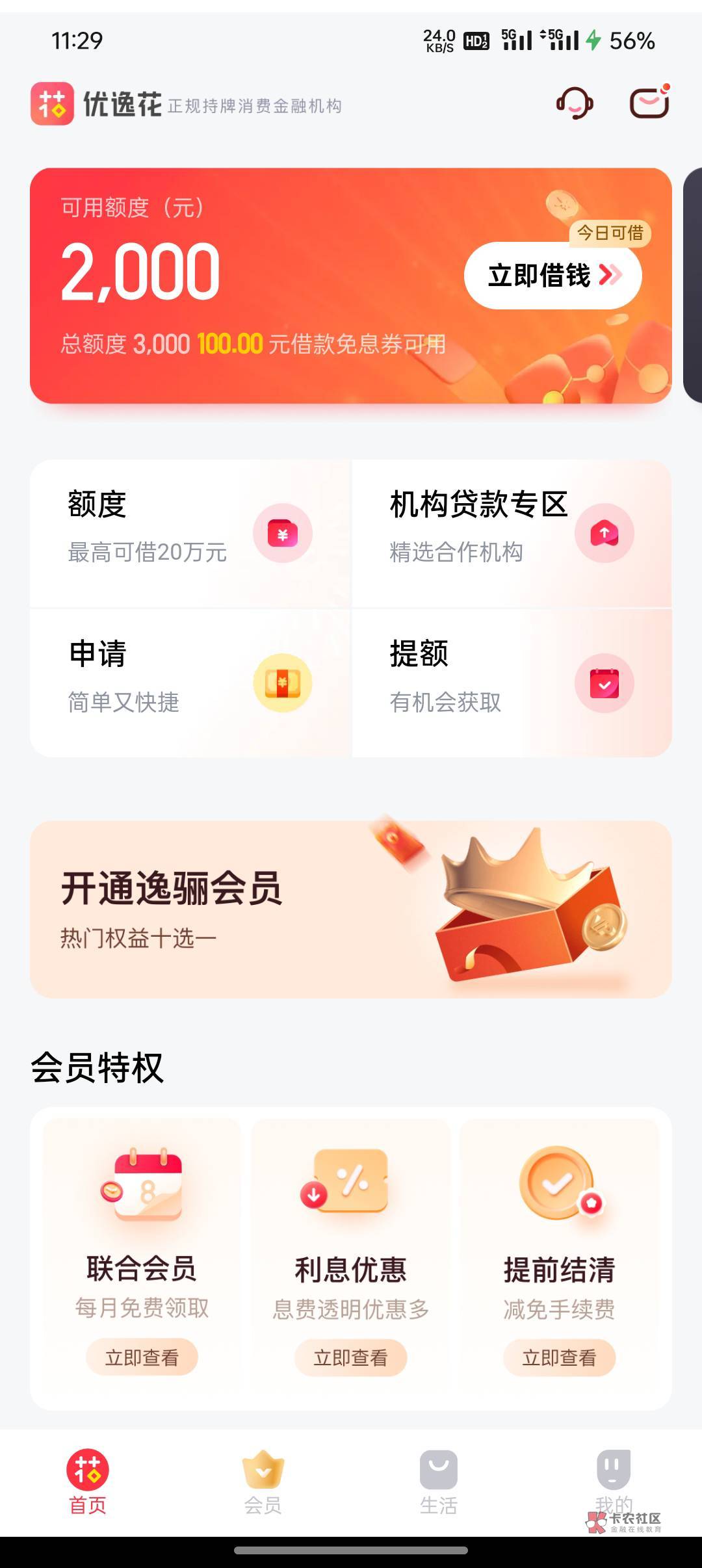 我进去就是安逸花已有额度