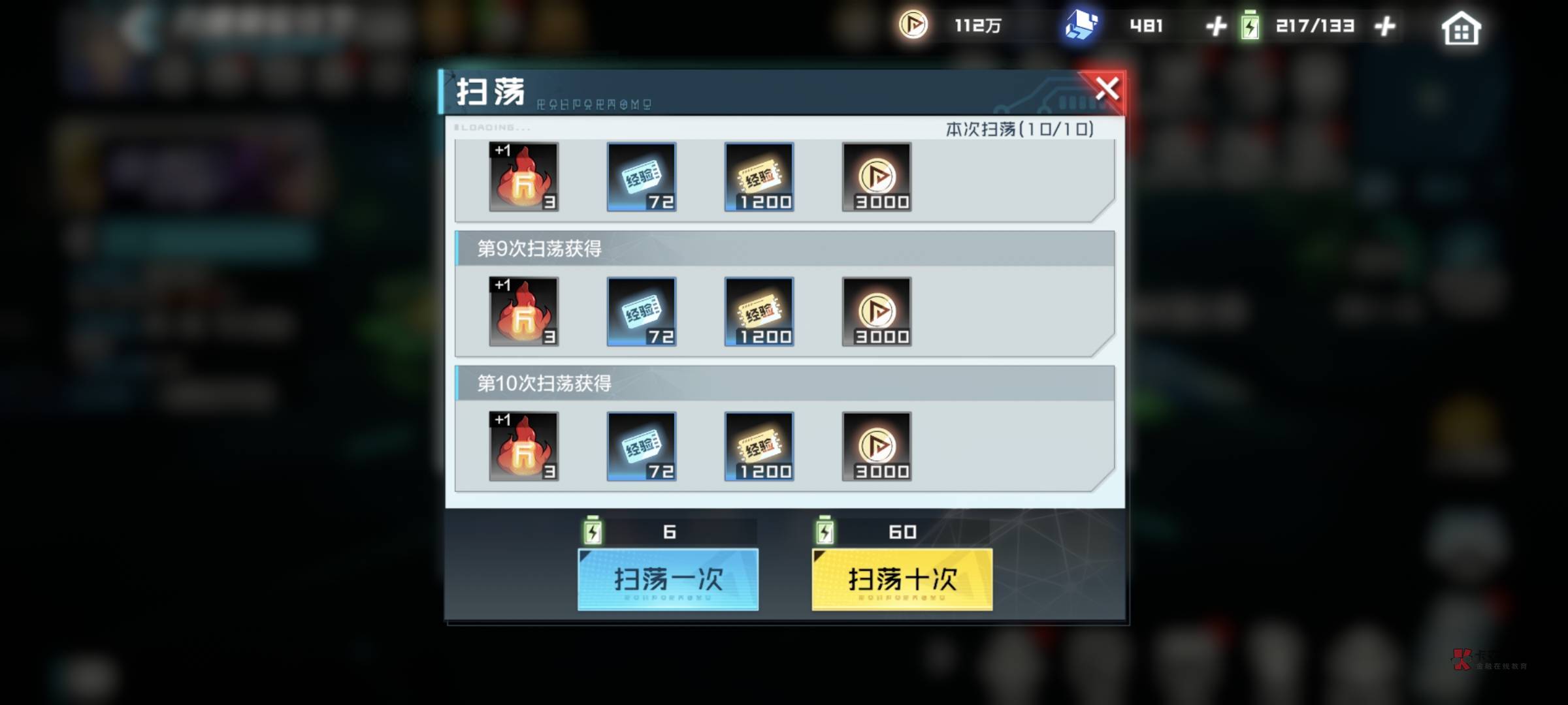 得到10级才能扫荡,自己仔细看我教程