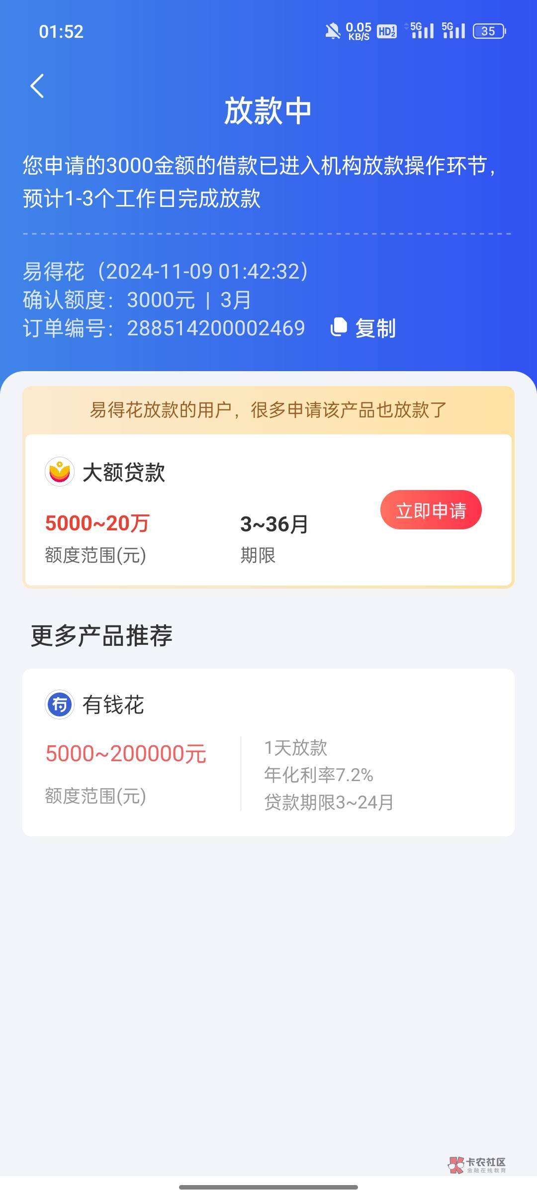 我融360匹配易得花3000额度三期,放款失败