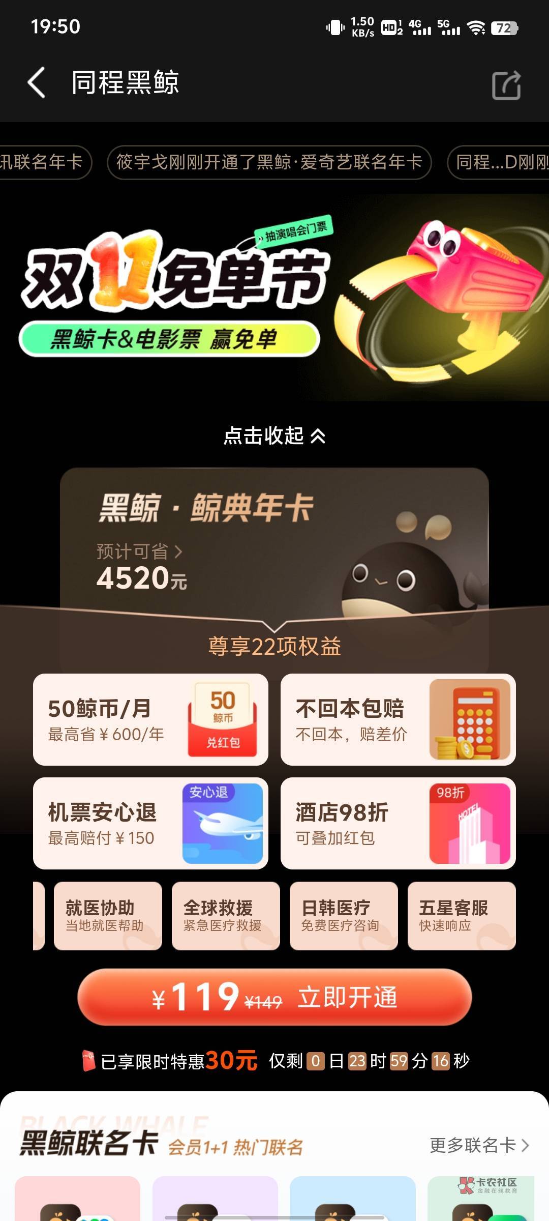 相当于你不用开黑鲸了 这个是联名会员 可以领生日 然后开通送一个300的