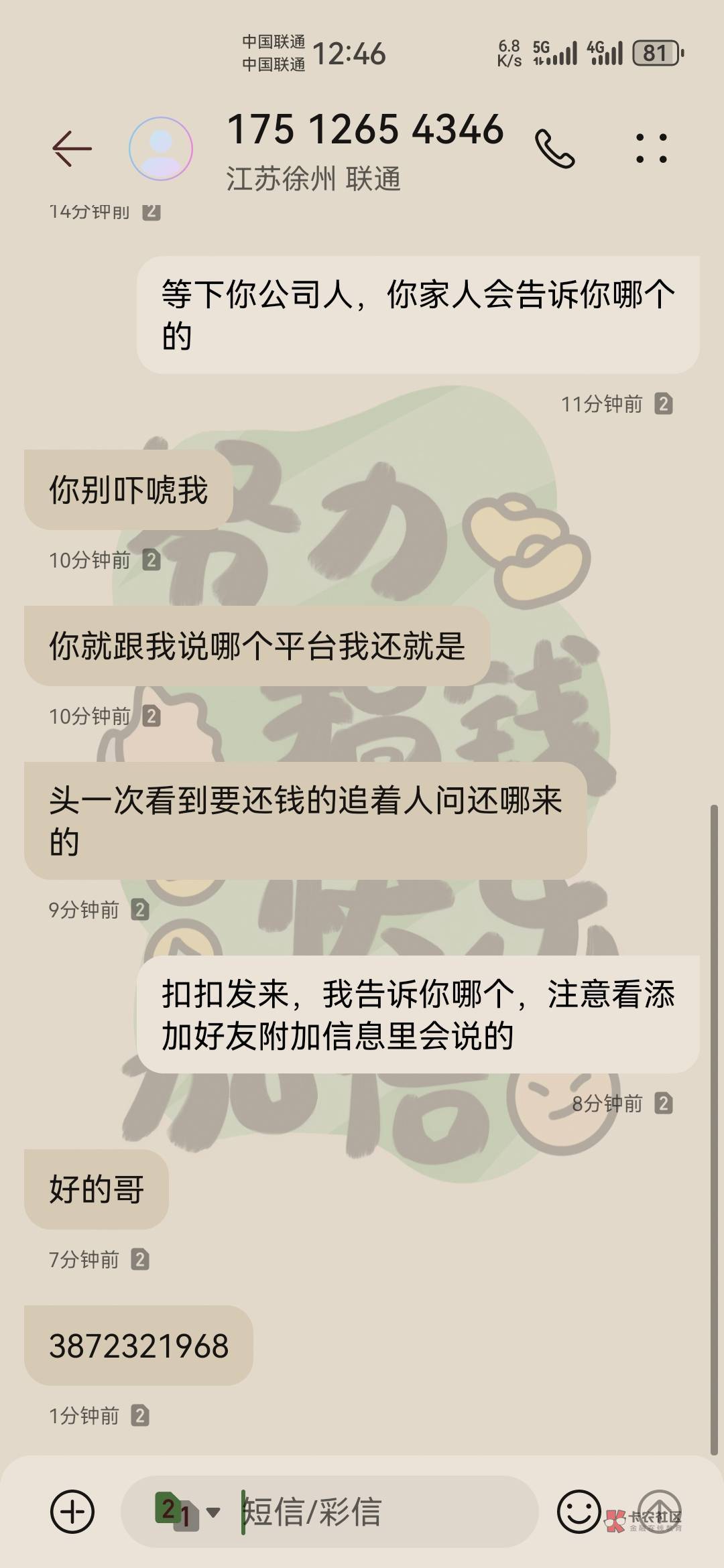 兄弟们 起因是这狗催上个月和我骂架,刚才换号码了,突发奇想用她的话术催收她,我们用的只是她原来的话,而且说的比她当初说的好听多了。