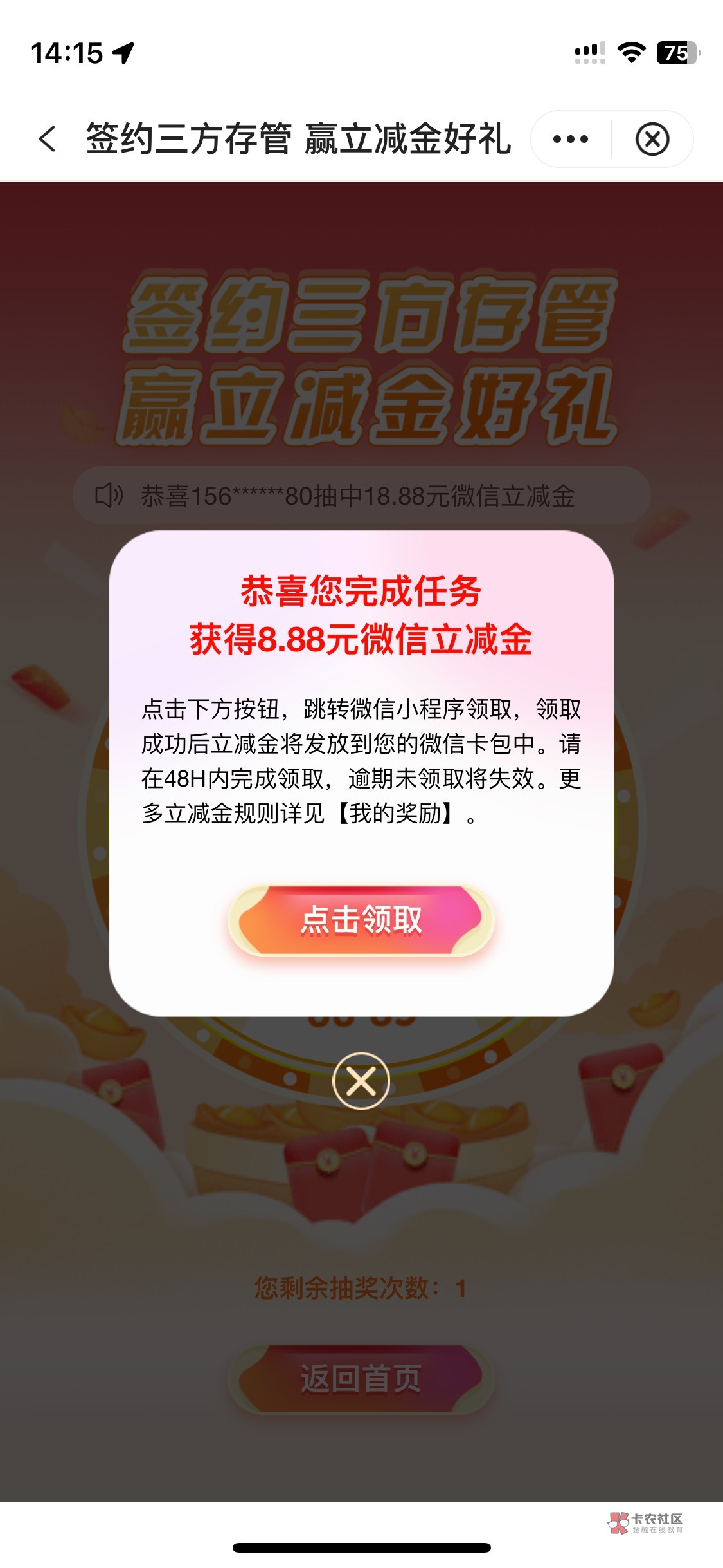 好像是五天前做的,今天才能抽