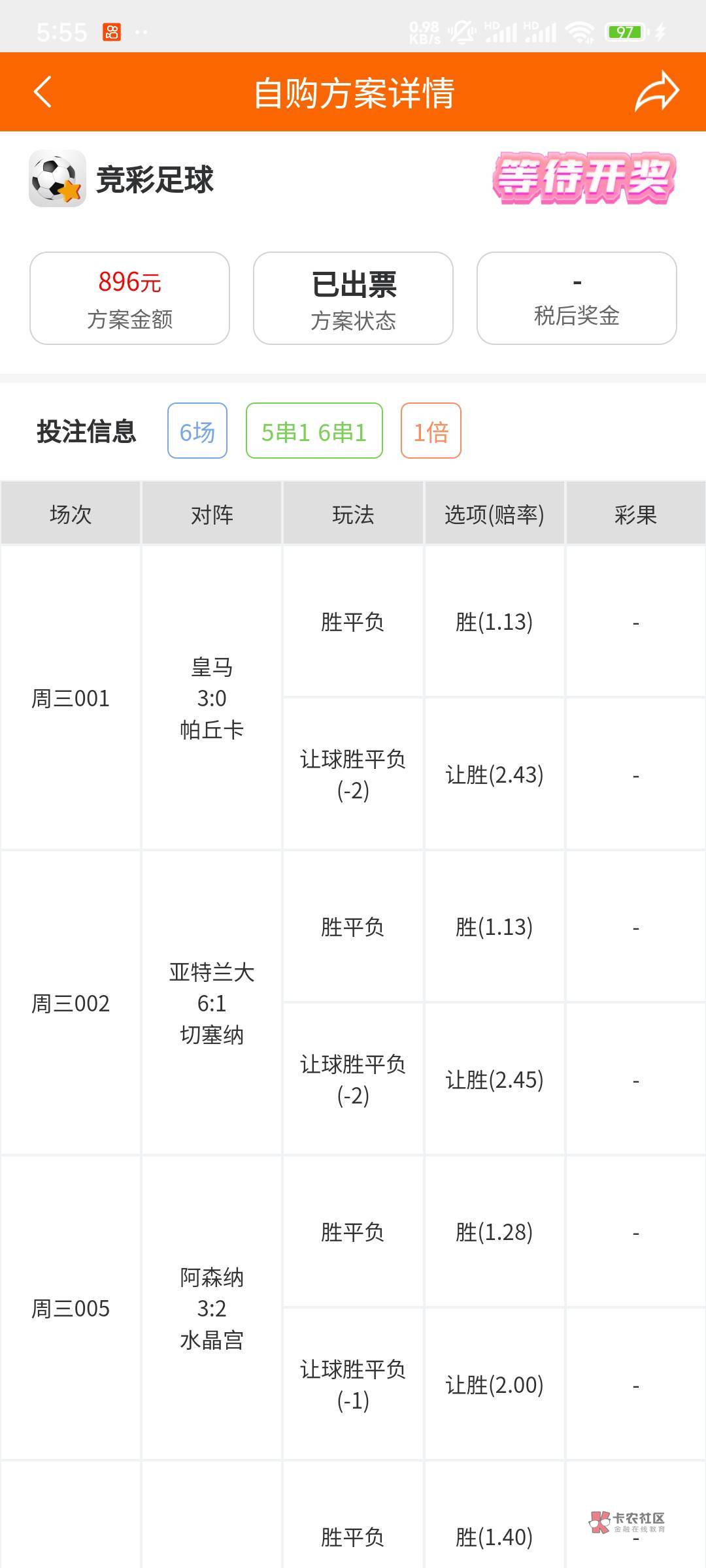 对的,你就阿森纳那个让1没中。