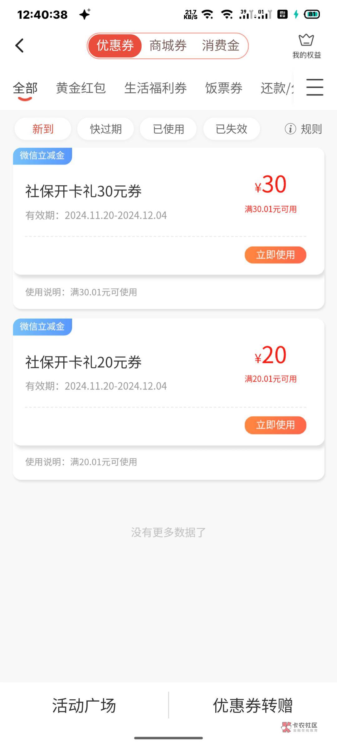 没有,卡都还没到手