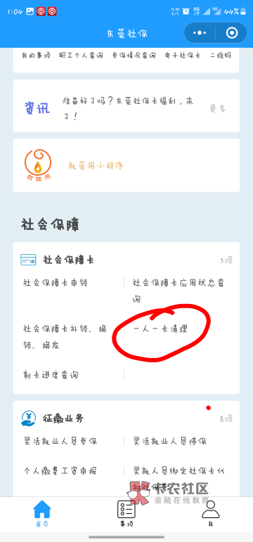 公众号东莞社保,一卡一清理