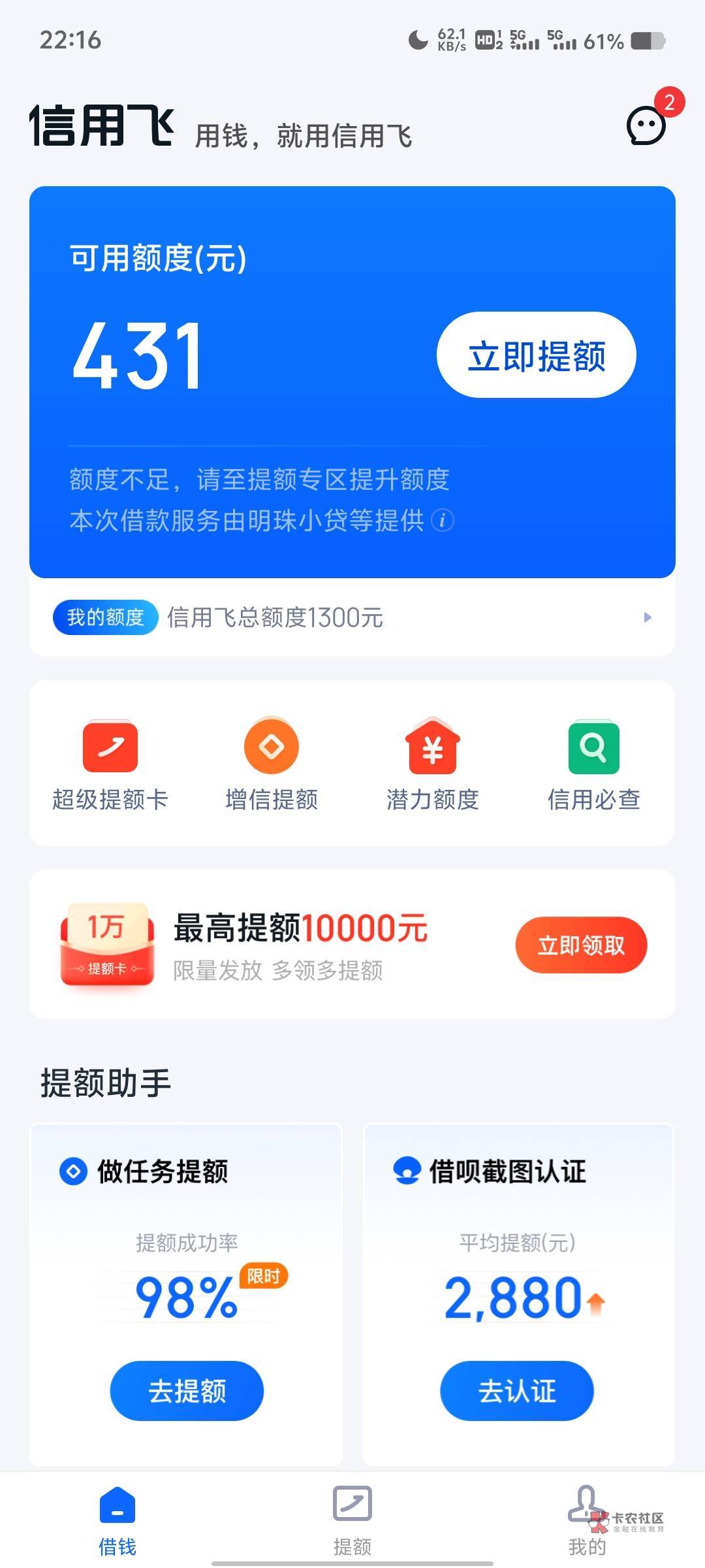 不会扣提升额度卡的,过不了秒退,你目前这种情况和我一样,大概率是借不出来了,提升额度卡提了额也没用,只会显示失败然后退你卡钱