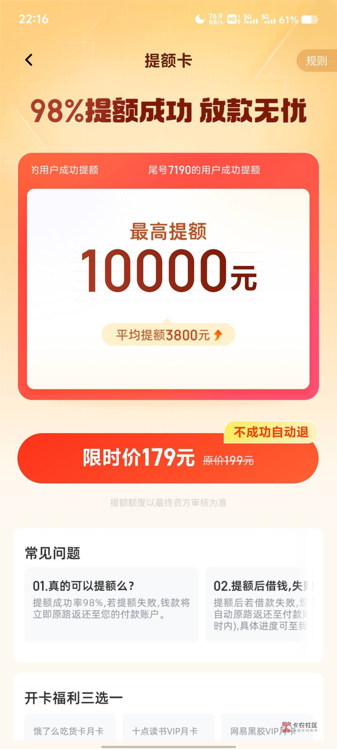 不是说的很清楚吗?购买提升额度卡之后,如果没有借款成功可以立即退