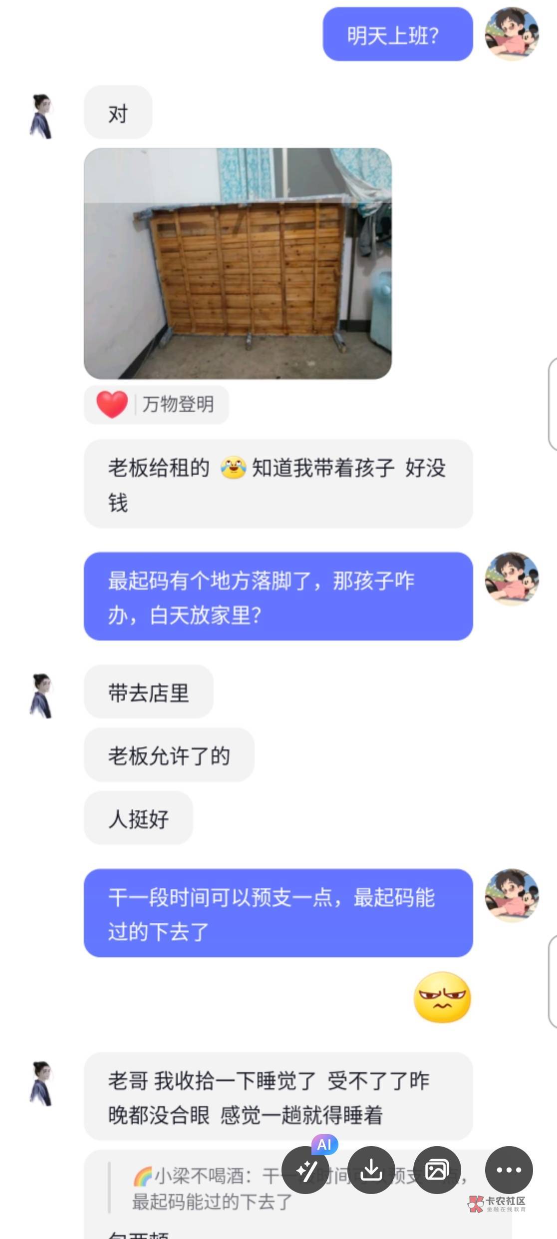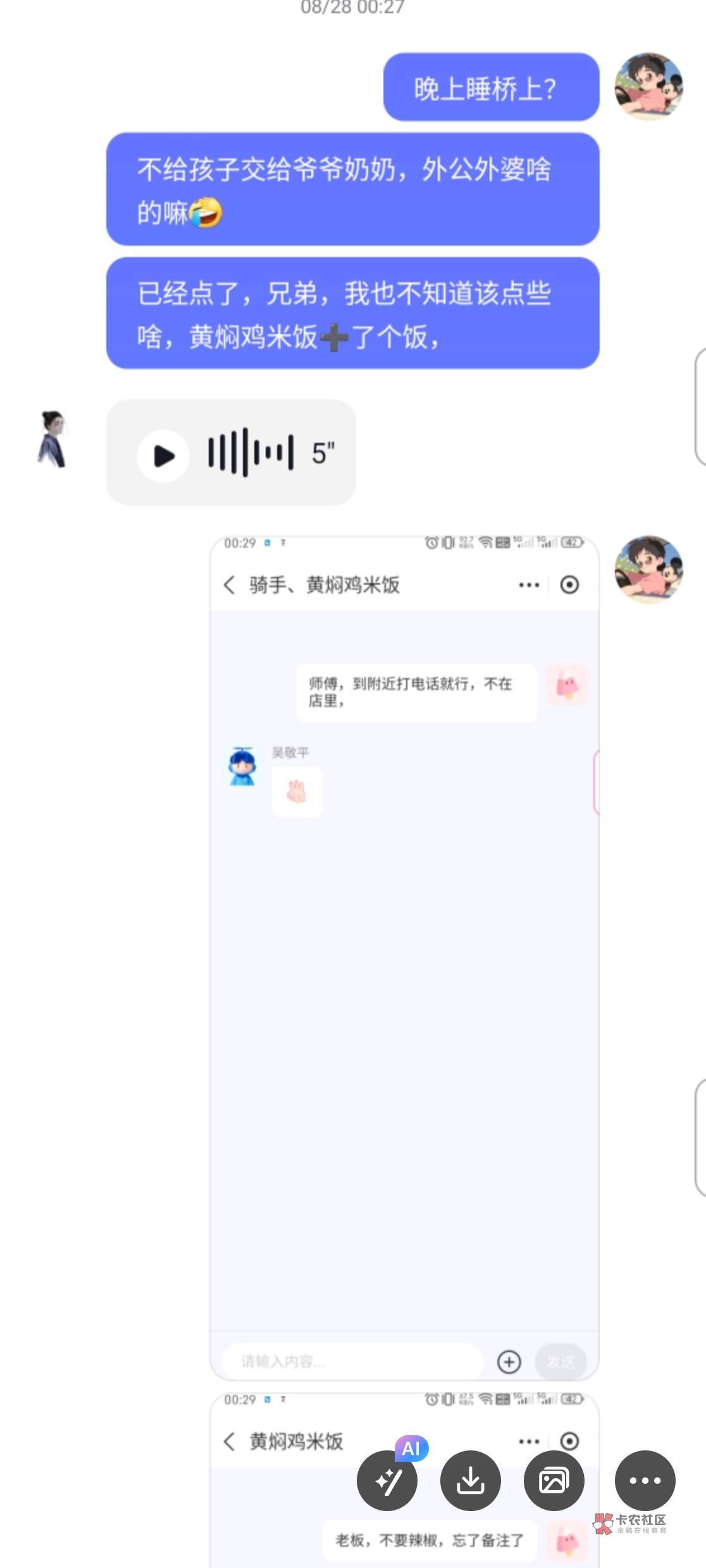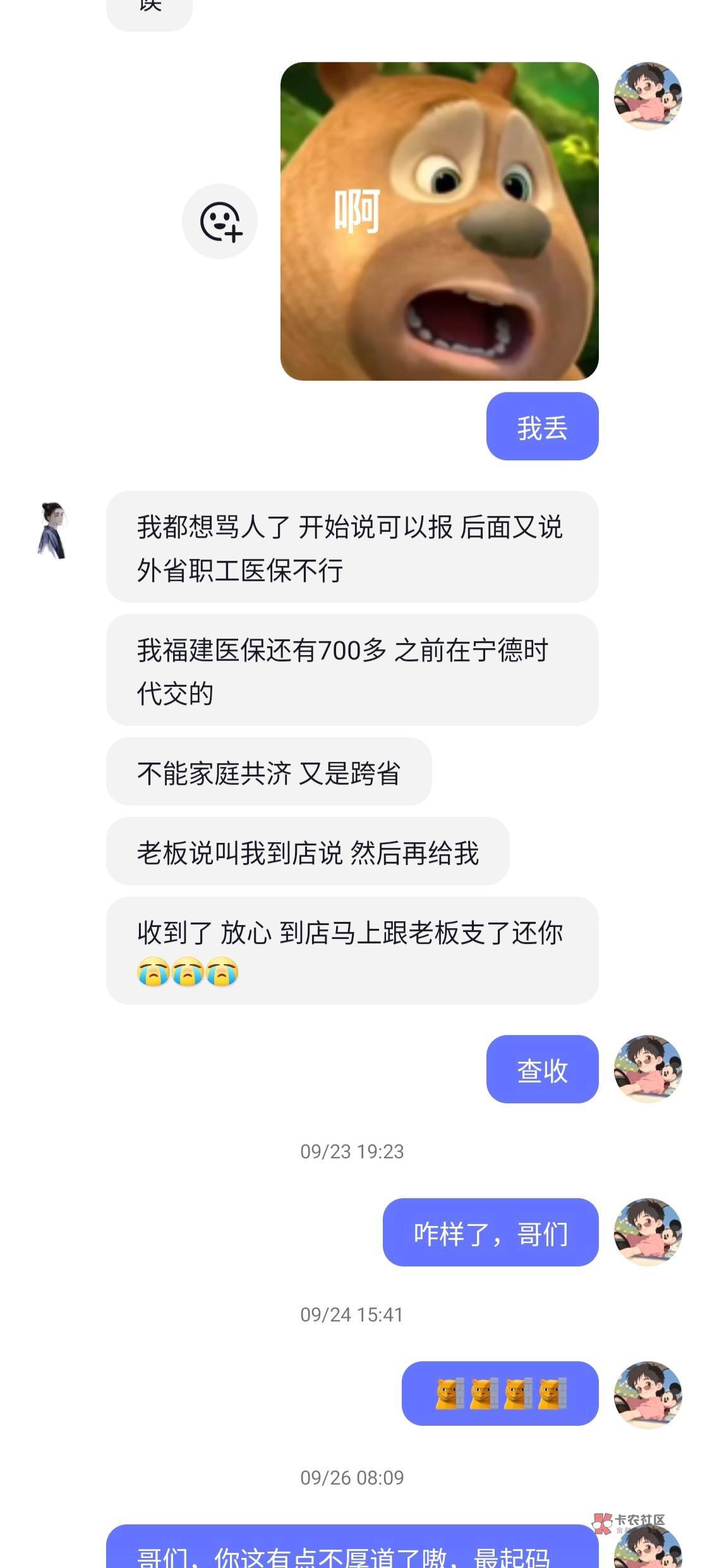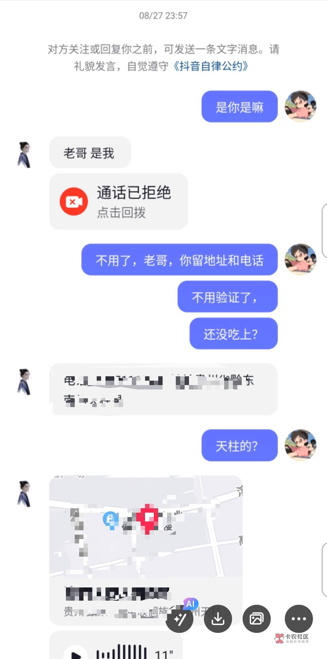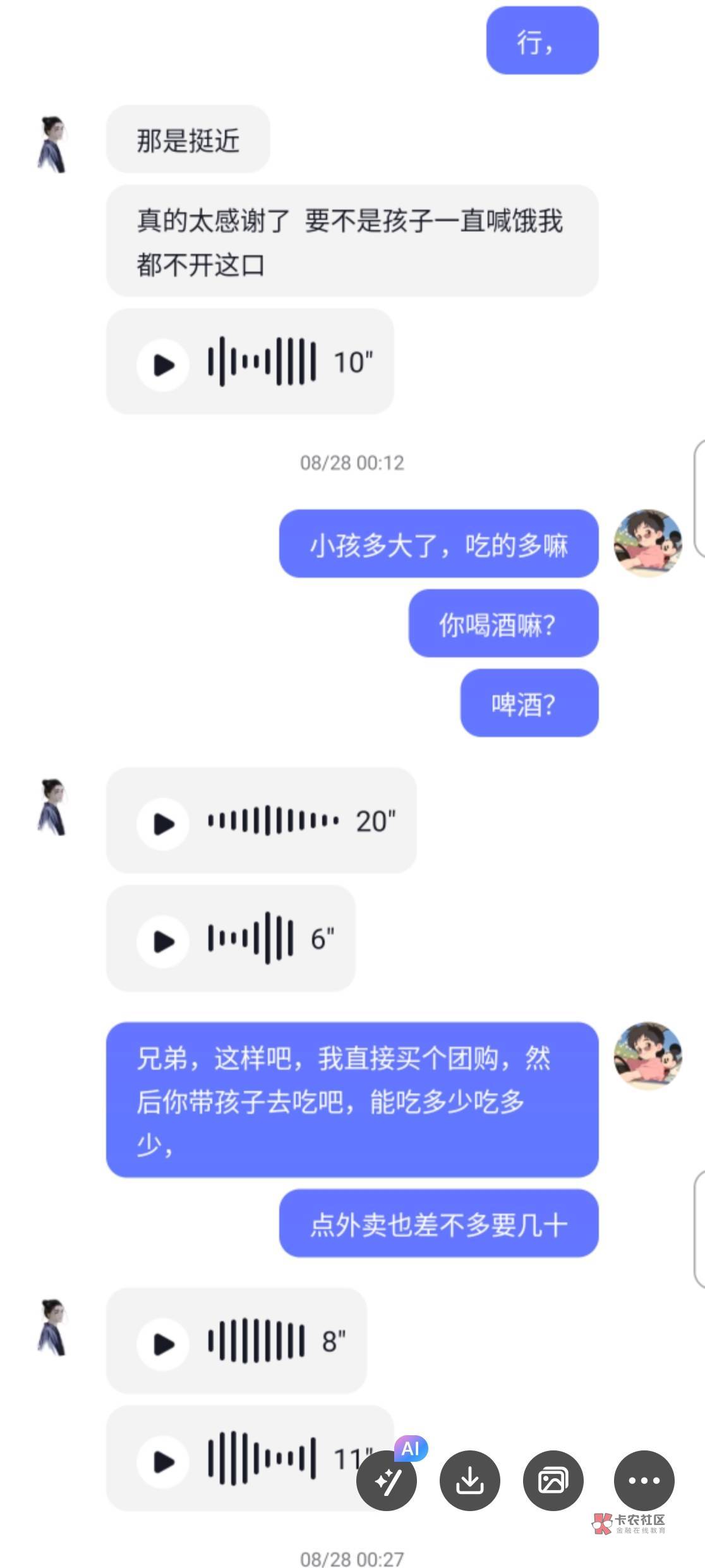 这楼主,我在0512这个地区,工作嘛,有中介的群,那天有群里有个人也是说没钱吃饭了,饿了一天了,后面善心大发,给了他红包30!中午给的,下午又找我要50 你这还说是借呢暮与晨 曦与霞 晚风和你 发表于 2024-11-22 21:24