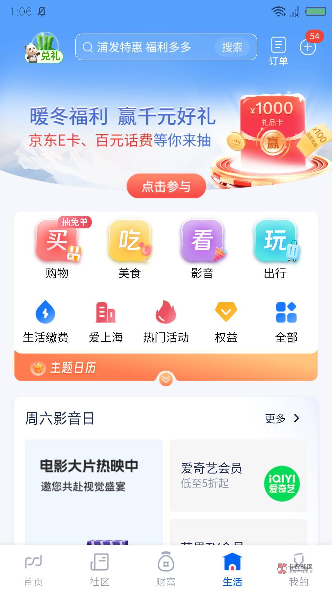 入口是生活,上面第2排有个爱上海,不是上海客户号的可能没有