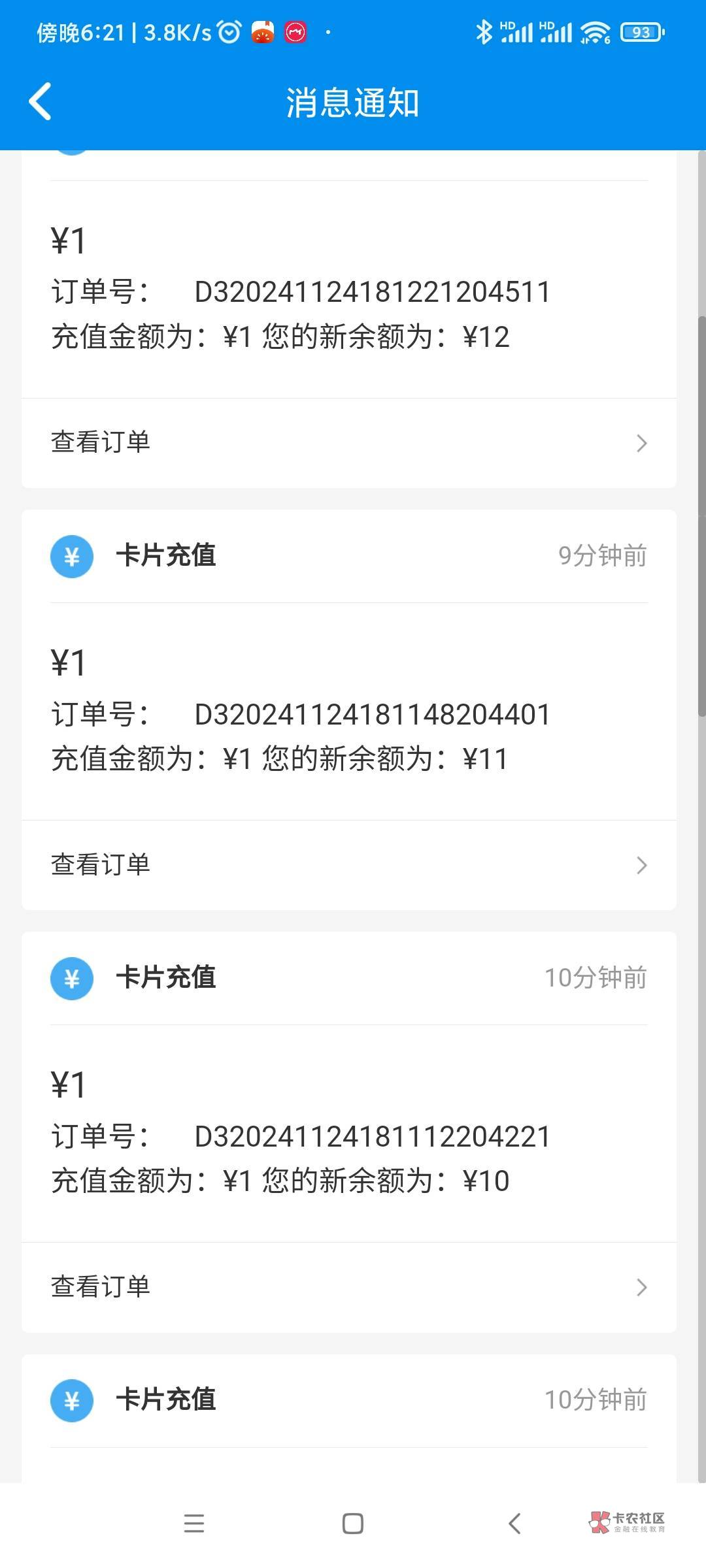 我买了,选了微信,卡包里面没有,充值1块也没出