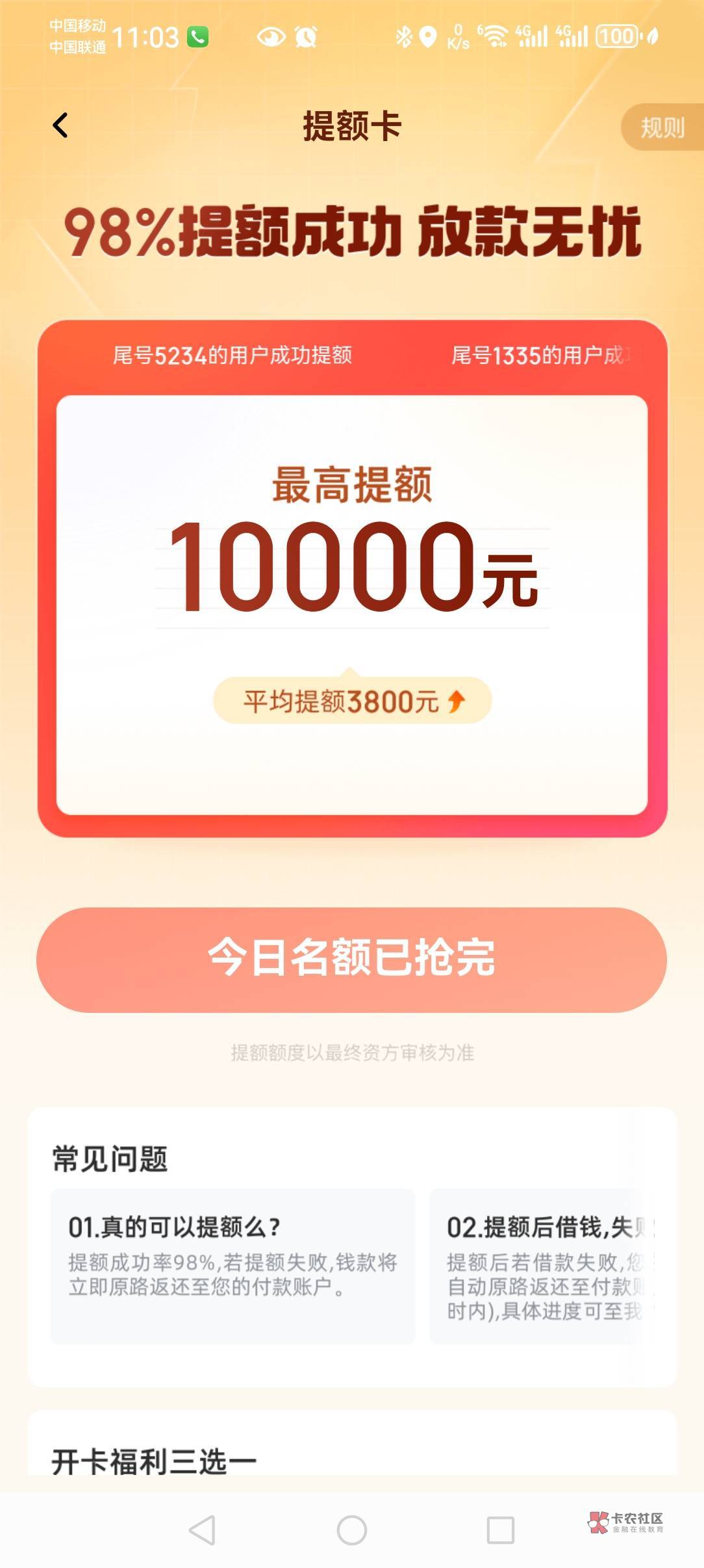 第二天才出的提升额度卡