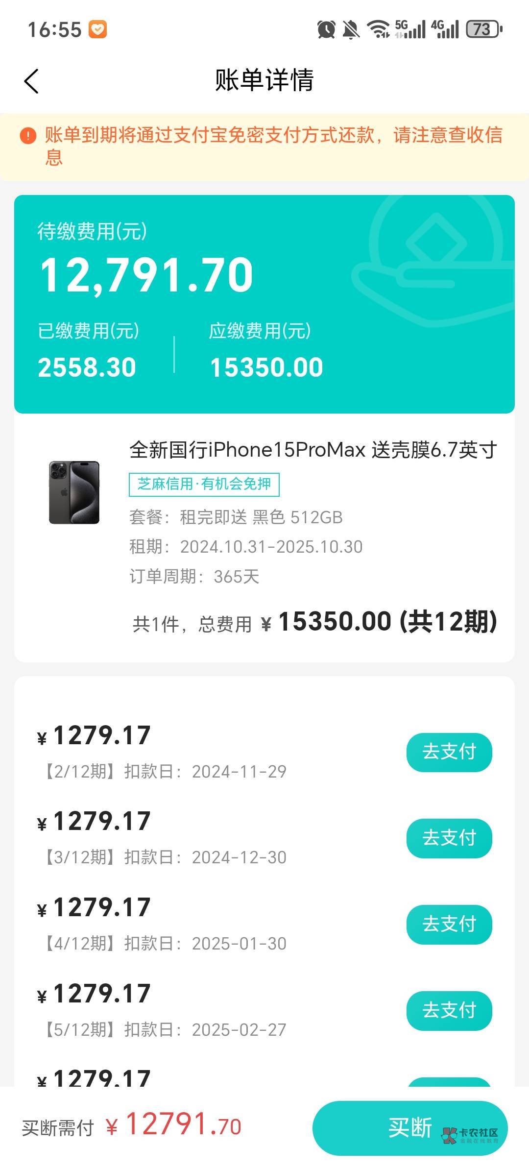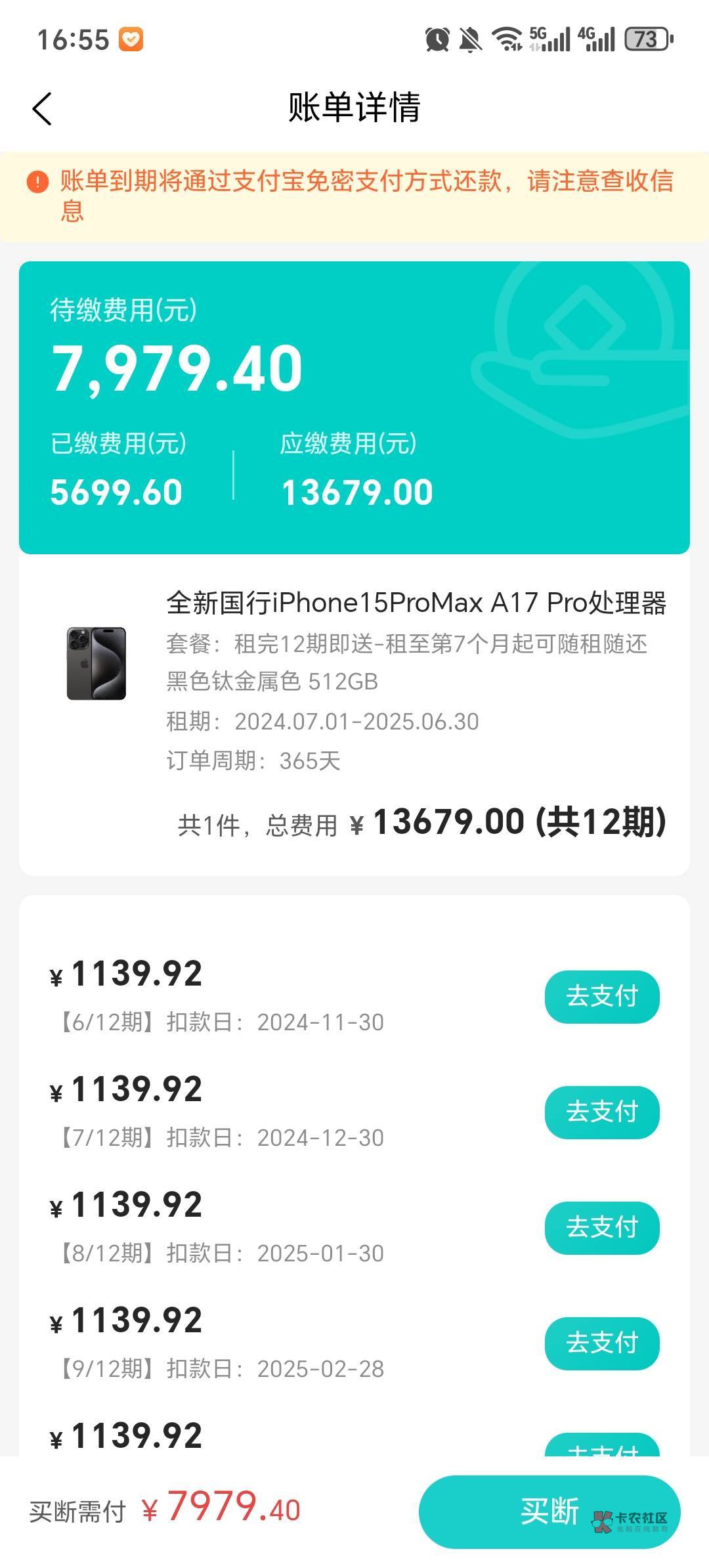 你这租的 要还3万 每个月要还3000 强制算了