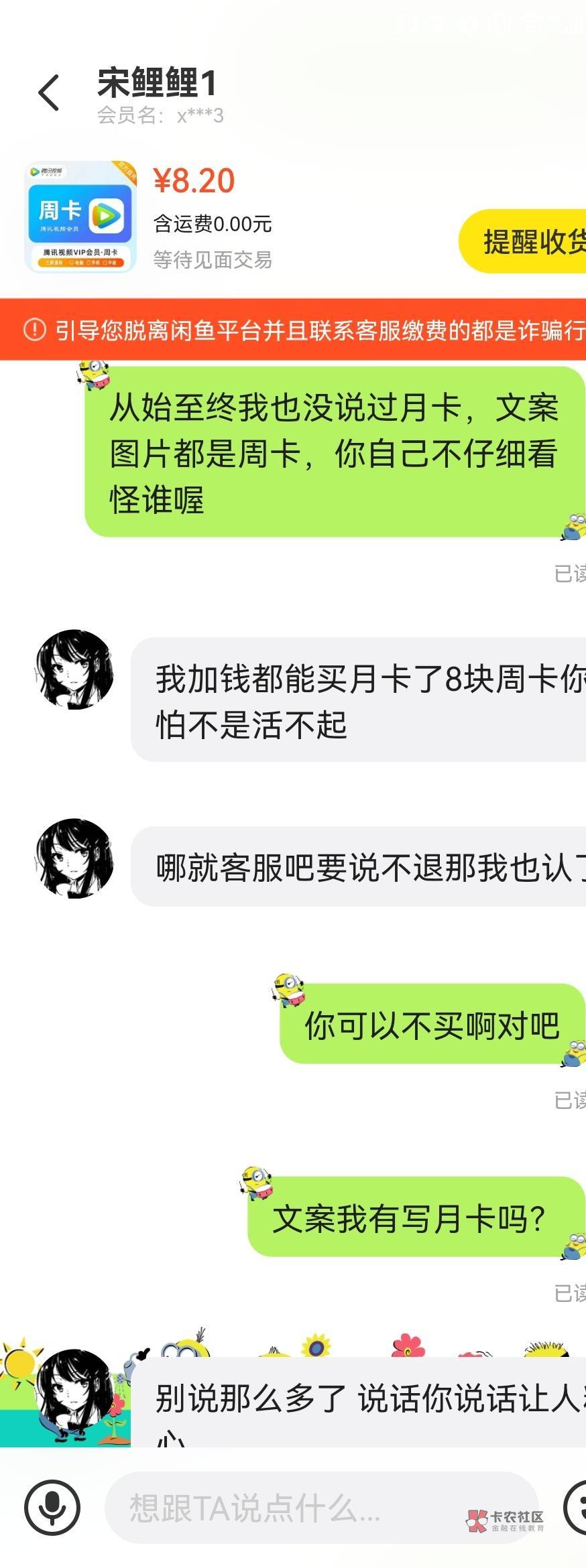 讲道理月卡代充14 周卡卖8确实贵了,不过这事明显你占理,闲鱼判买家赢的话就有点过分了