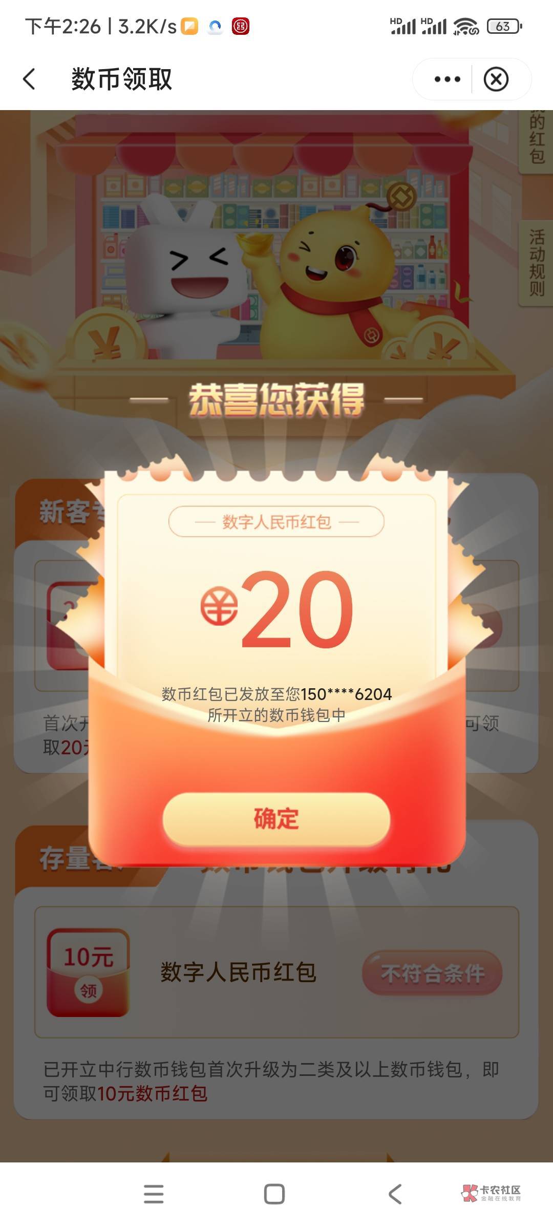 一样的的操作,不符合,但是第二个领了10