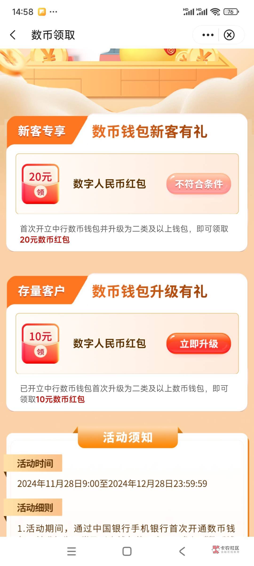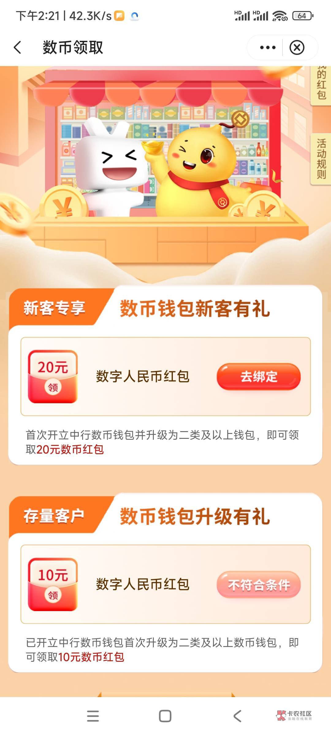 4类进去提示去绑卡才能领