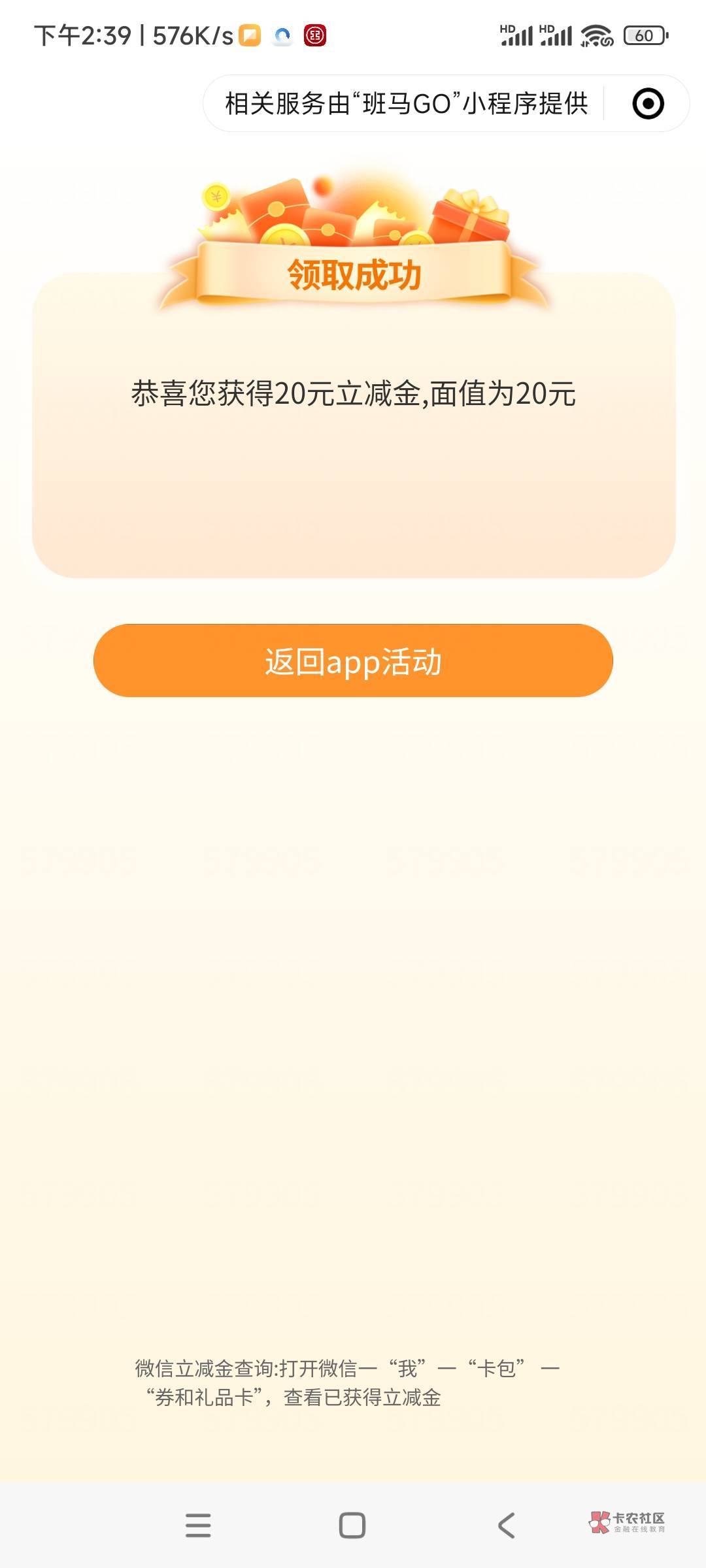 你上个月领过二十立减金吗