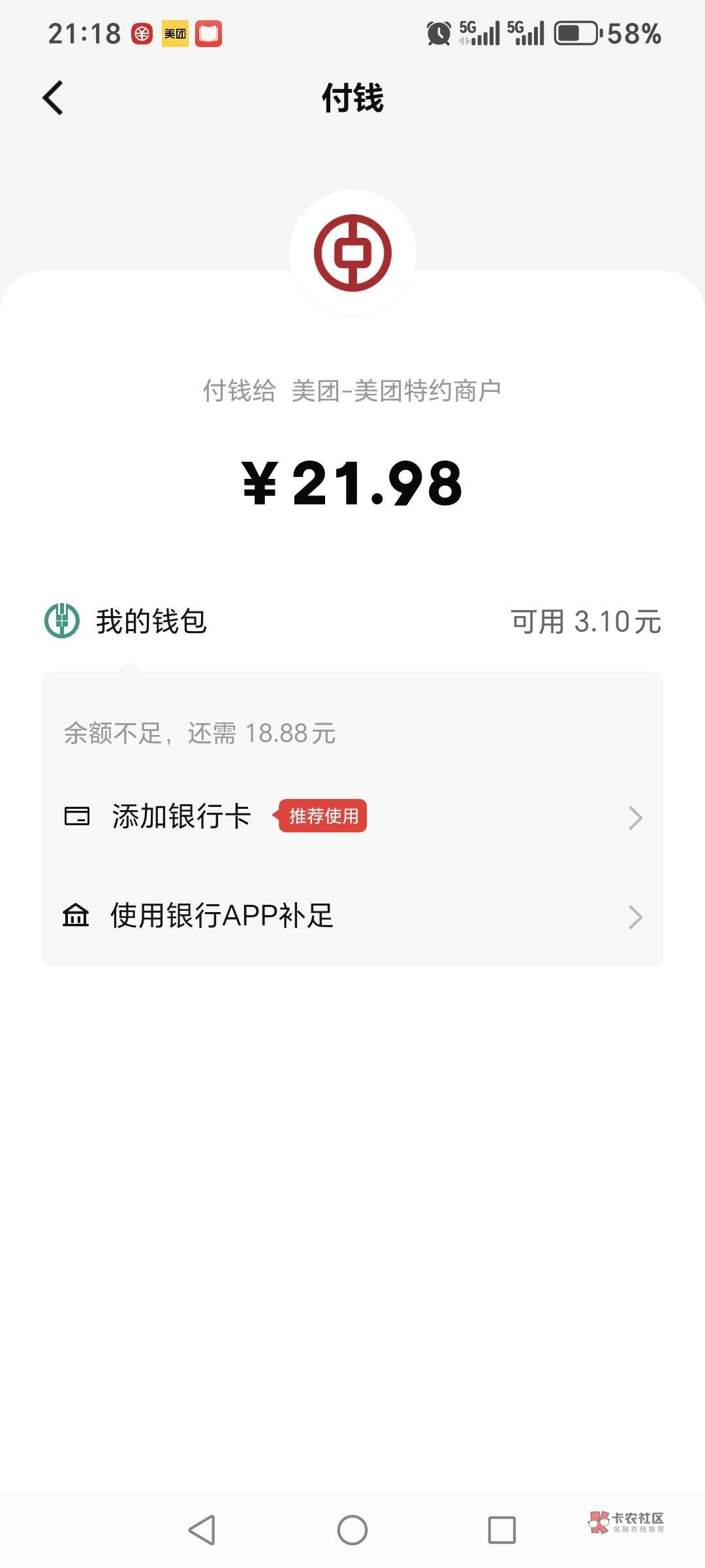 哥们你农行钱包开了快付没,直接在美团app里面输密码付就行了啊,我刚t