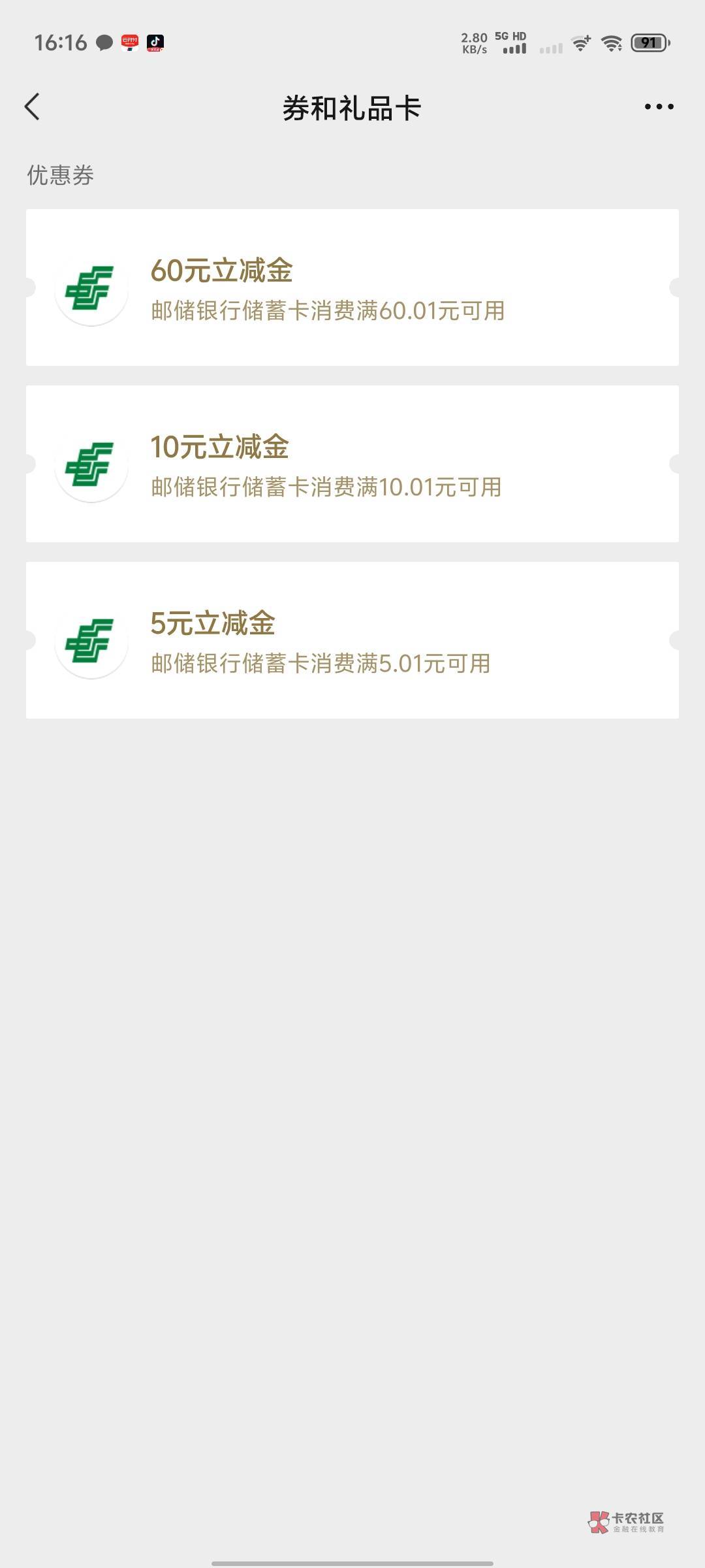 邮政存1块就可以领60