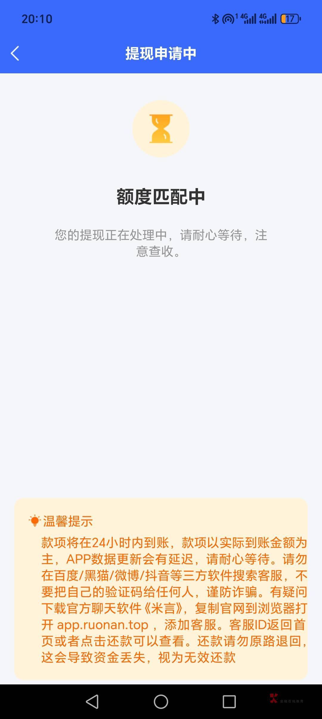 我在今天中午一点多,点击了短信的鲸鱼借条下载,上传全部的资料后就拒绝了,退出来后页面又显示额度匹配 ...